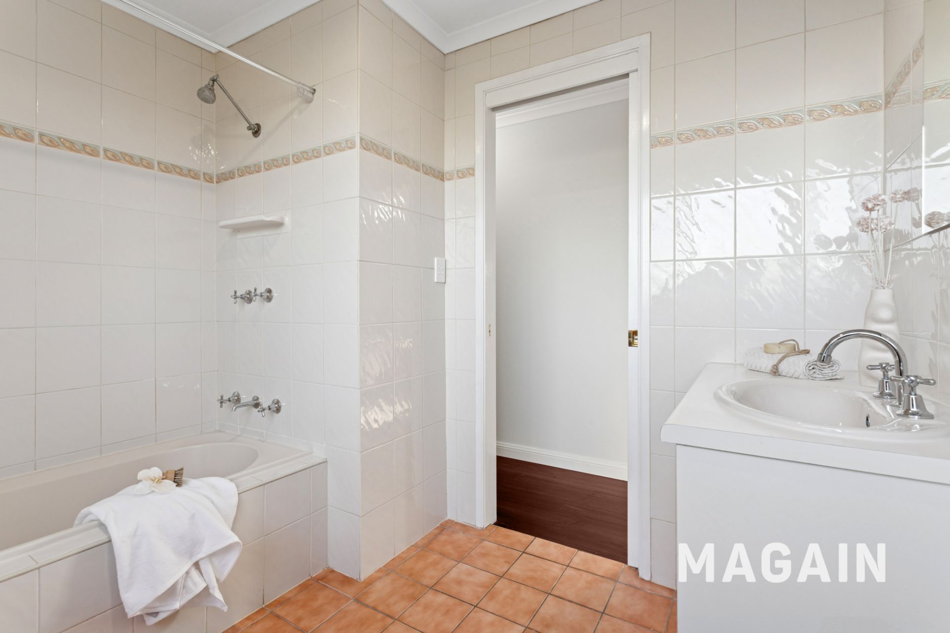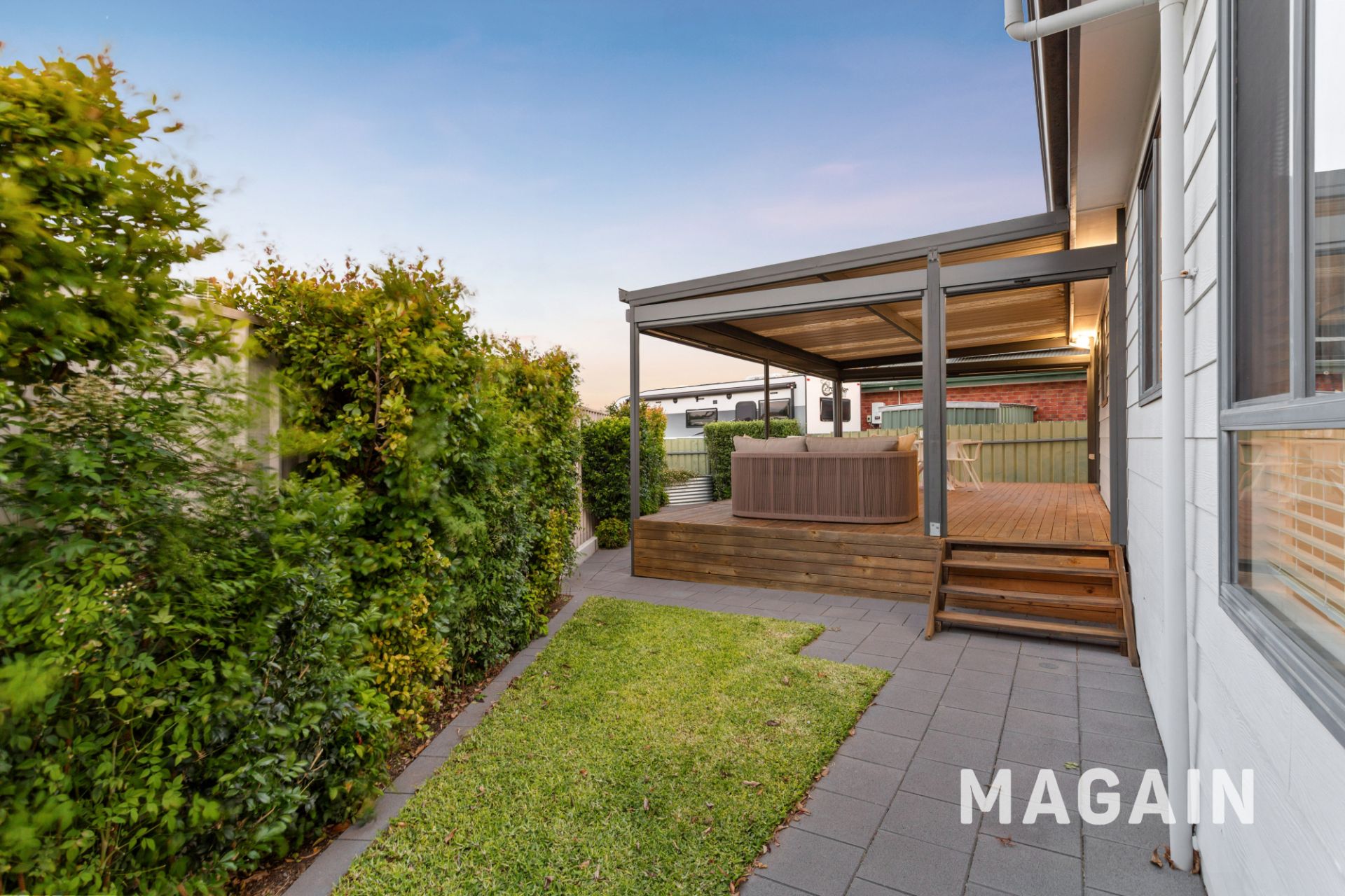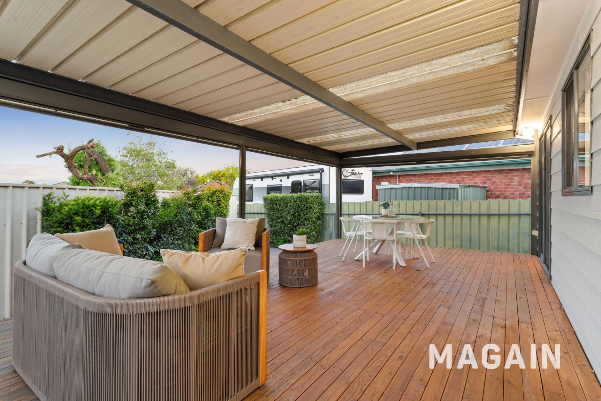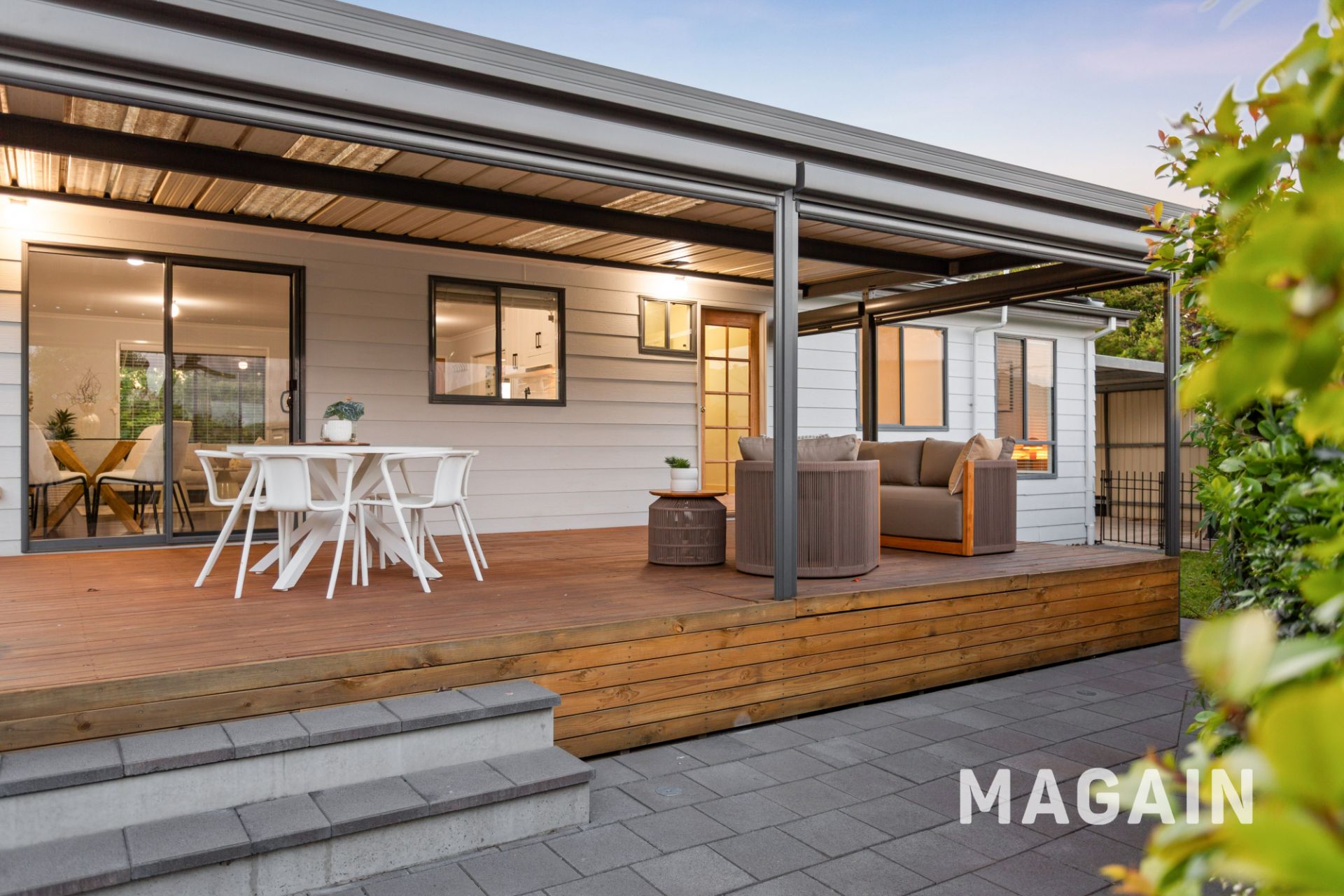 A standout feature of this home is the impressive timber-decked undercover entertaining area accessed via sliding doors from the living area. Complete with fitted Ziptrak blinds, this outdoor haven seamlessly extends the home and ensures year-round indoor/outdoor living while capturing glimpses of the stunning hills into the distance