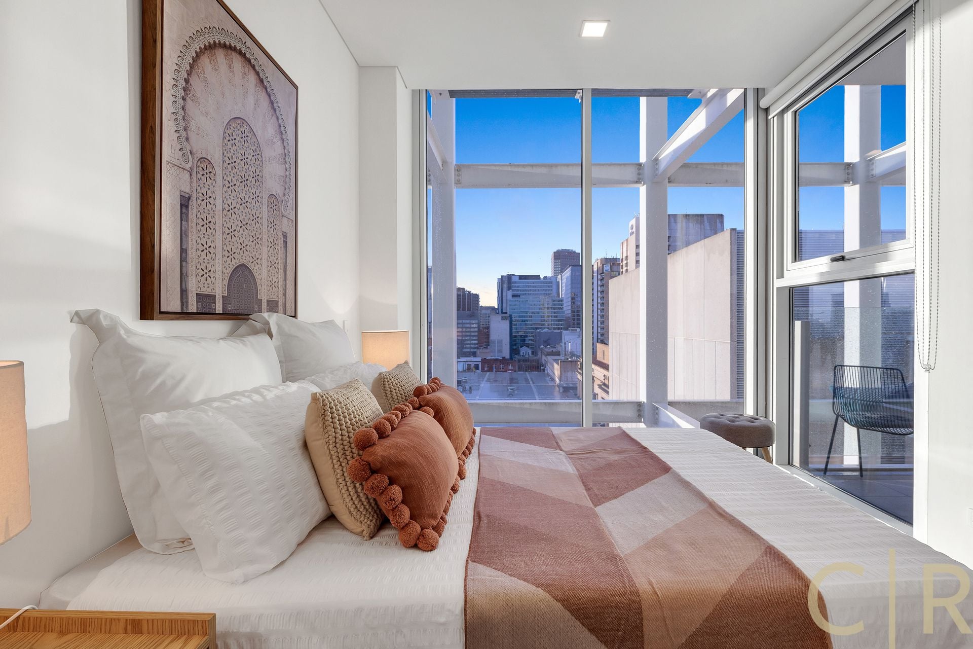 * Superb master bedroom with floor to ceiling views of the City Skyline