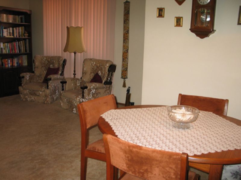Comprising of spacious lounge room with separate dining area featuring a mirrored wall capturing the natural filtered light and includes a built in cupboard.