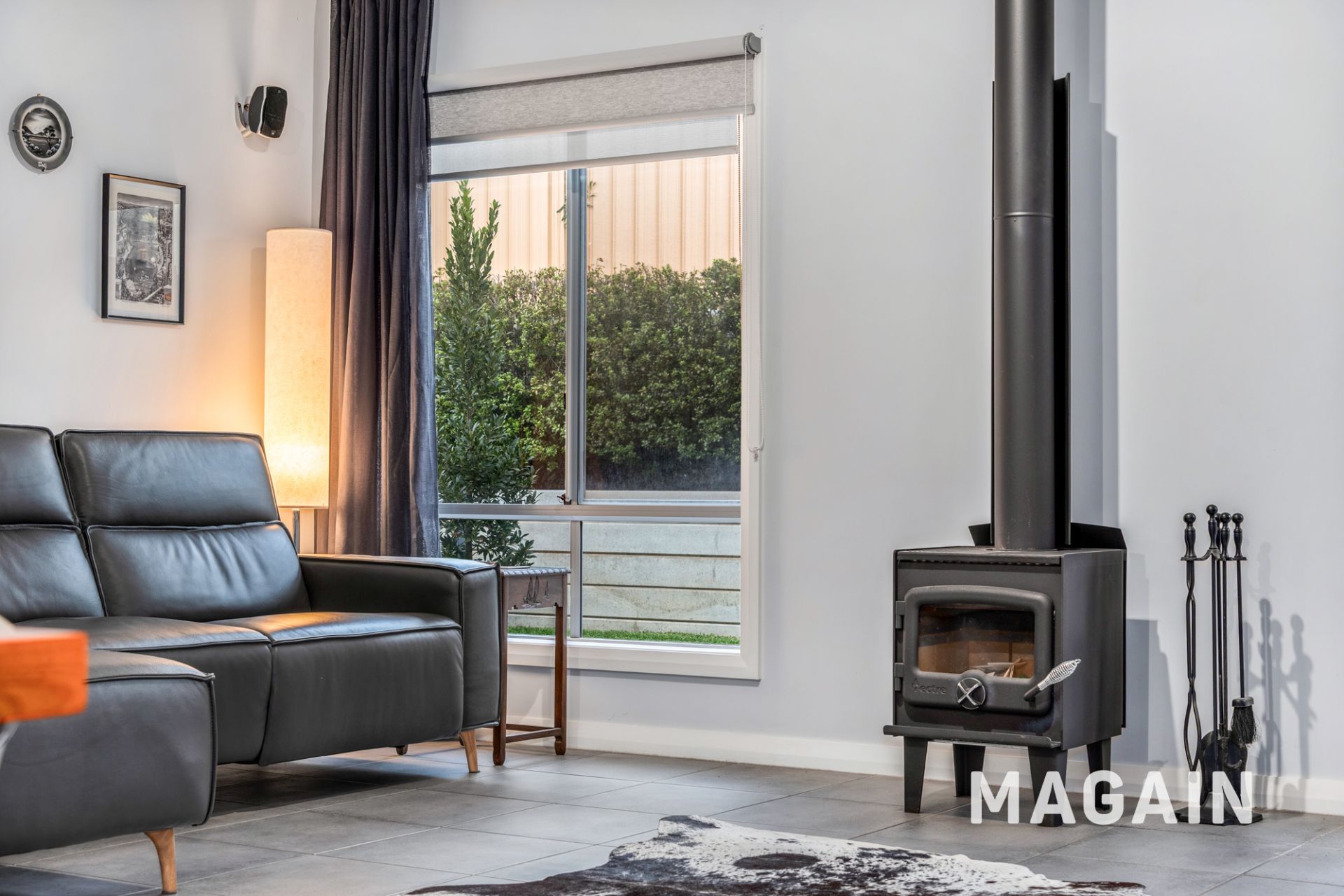 Flowing from the dining area is the generous lounge room, where a combustion wood fireplace adds warmth and character. Sliding doors open to the outdoor entertaining area, seamlessly connecting indoor and outdoor living, perfect for hosting family and friends. The backyard is thoughtfully designed, featuring lush lawns, low-maintenance gardens, a separate shed, and a workshop with an aircon for heating and cooling behind the garage, providing ample space for hobbies, storage, or play.