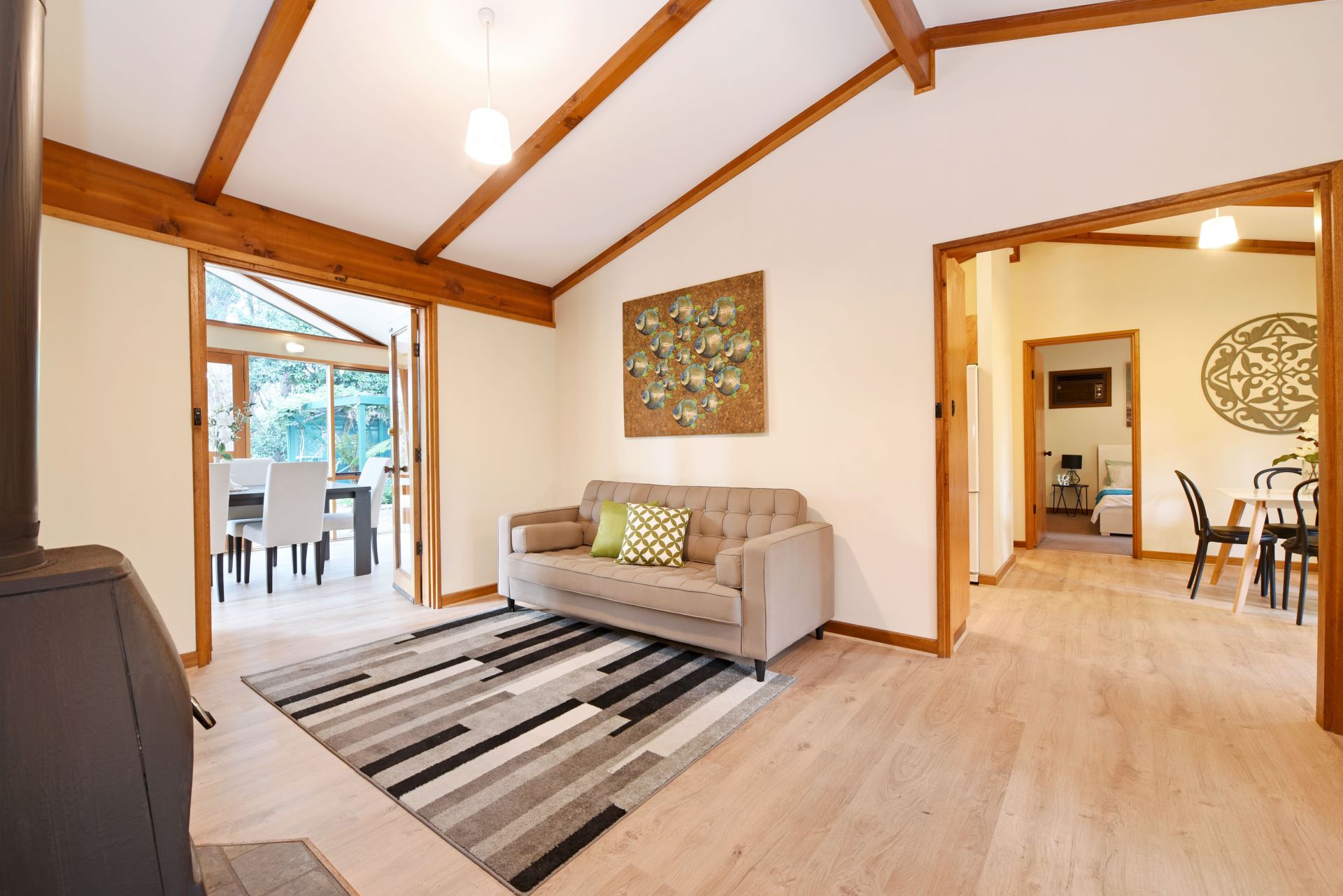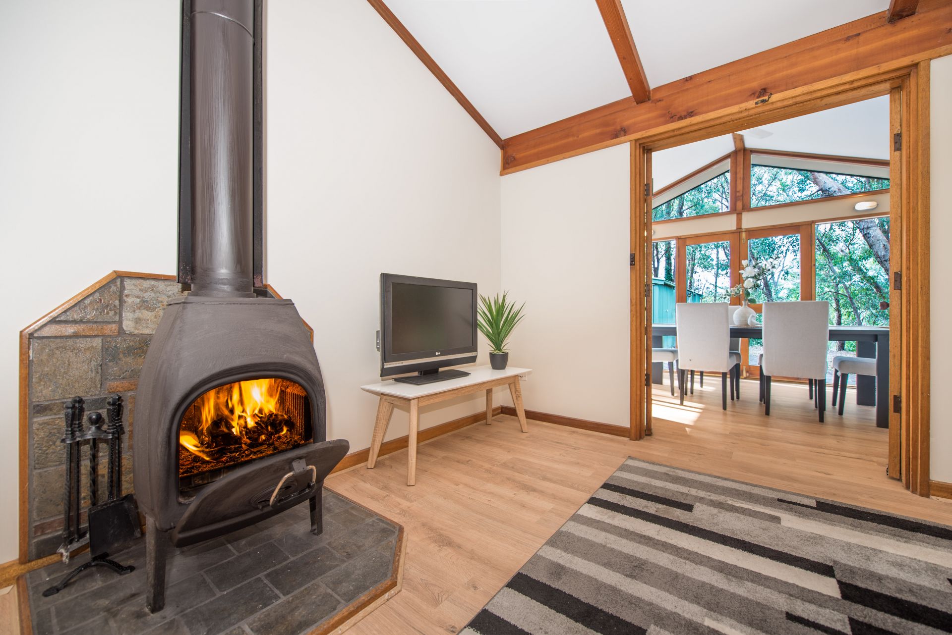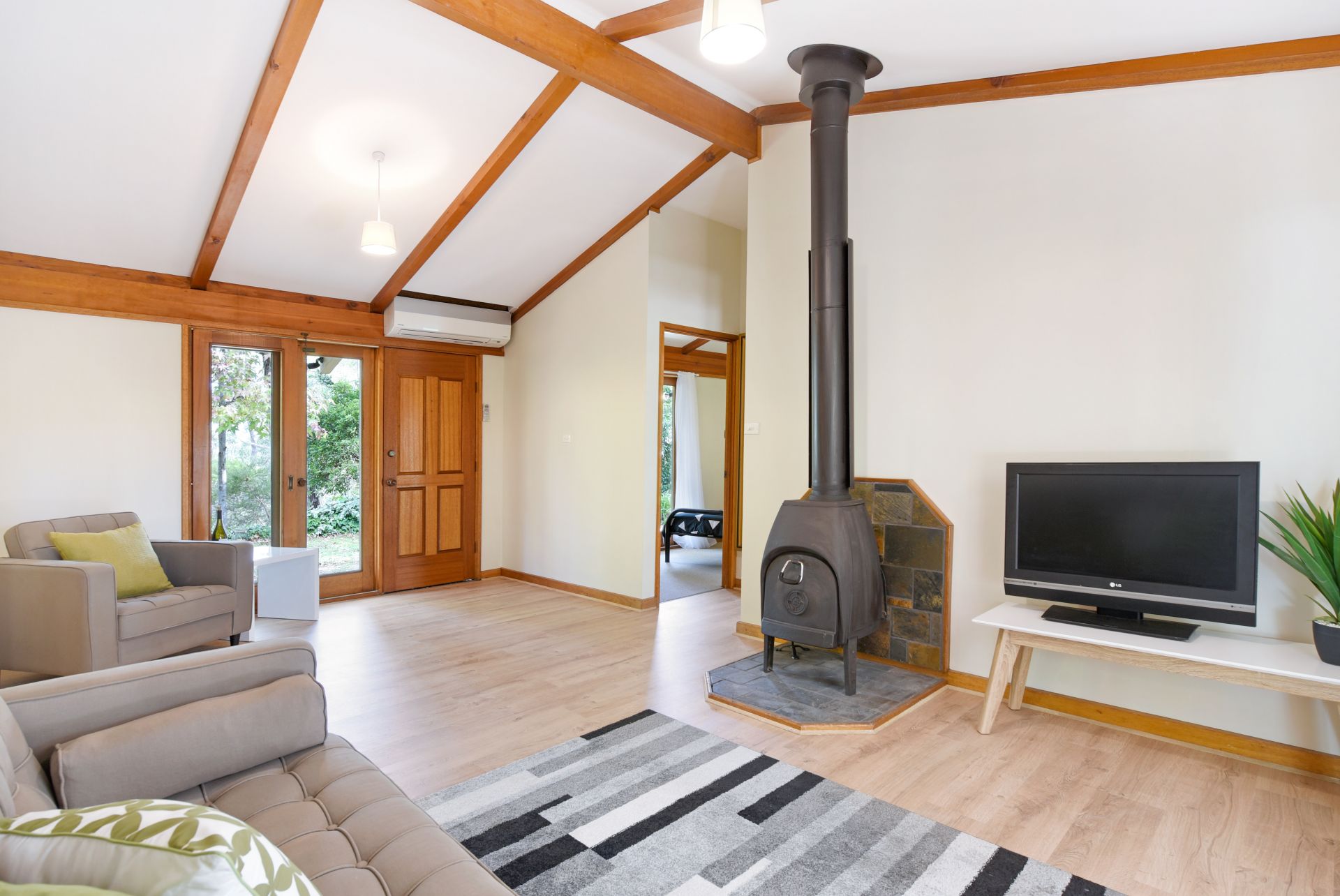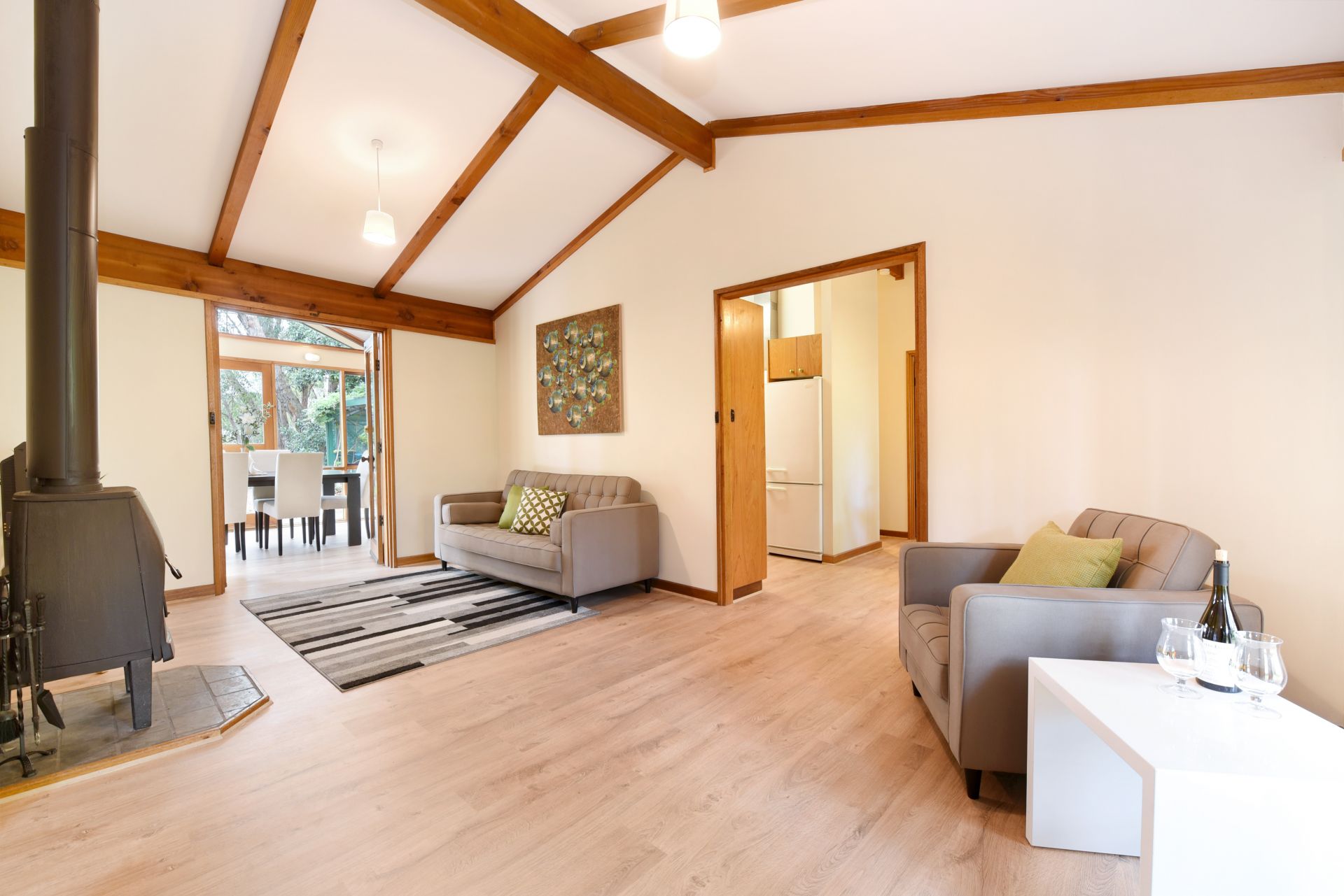 At the heart of the home is a U shaped kitchen with plenty of bench and cupboard space. Complete with gas cook top and dishwasher the chef of the home will enjoy cooking up a storm and cleaning up the afterwards with ease. An adjoining meals/family area is a great spot for the family to enjoy an intimate dinner together after a long day. A separate lounge provides a quiet space to unwind away from the hustle and bustle of the kitchen. Complete with wood fire, curl up in a blanket with a good book and a glass of red on a cold winters night.