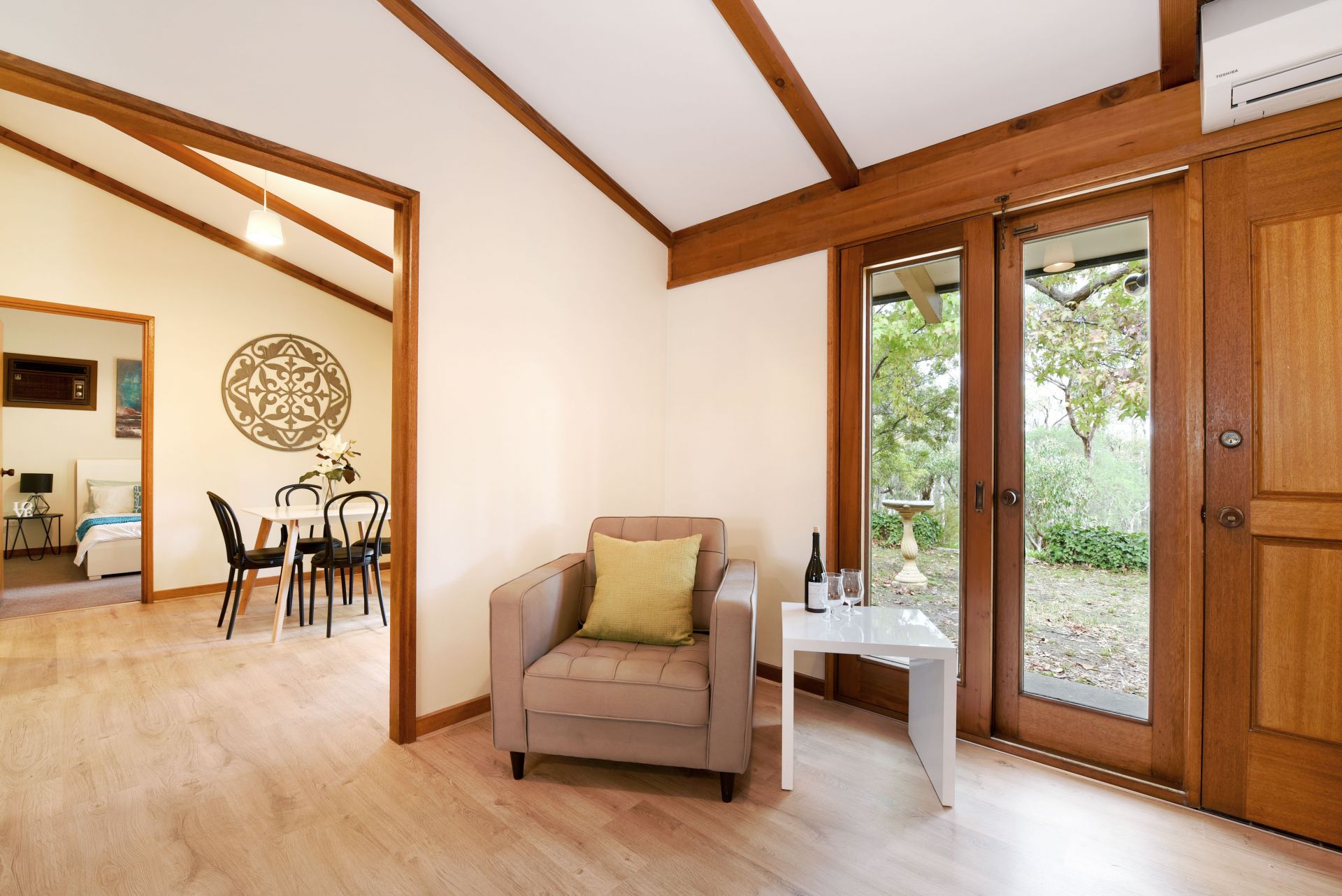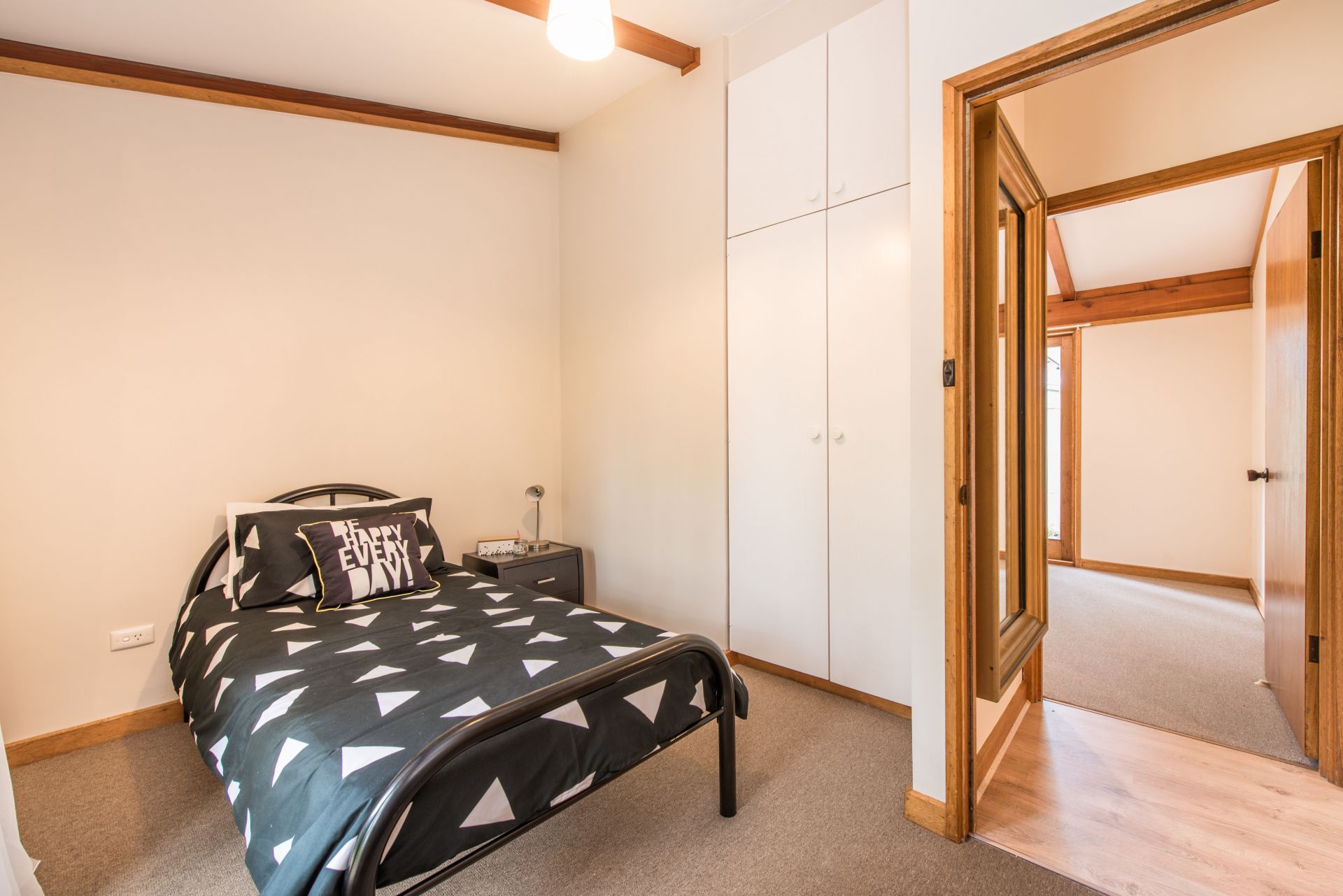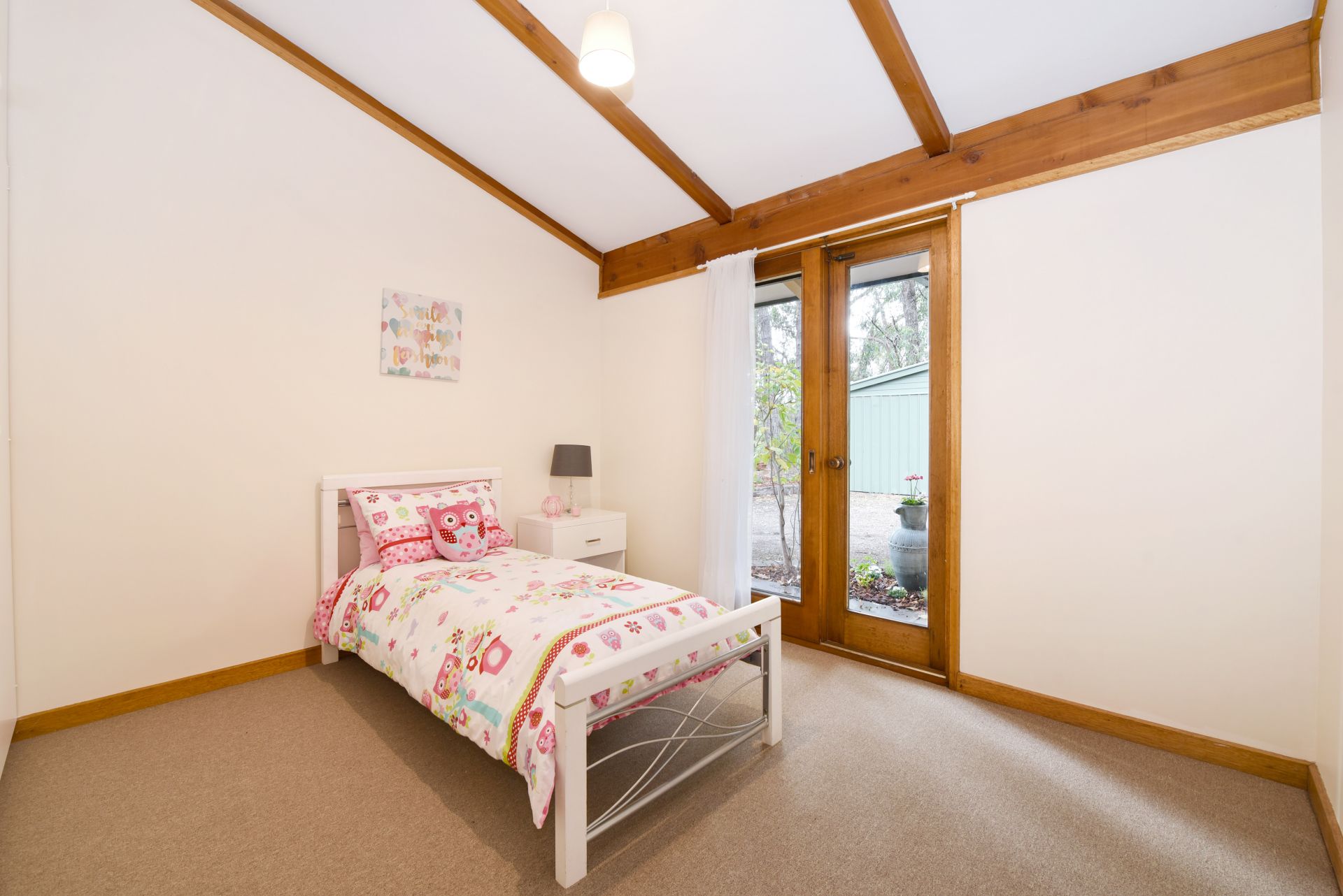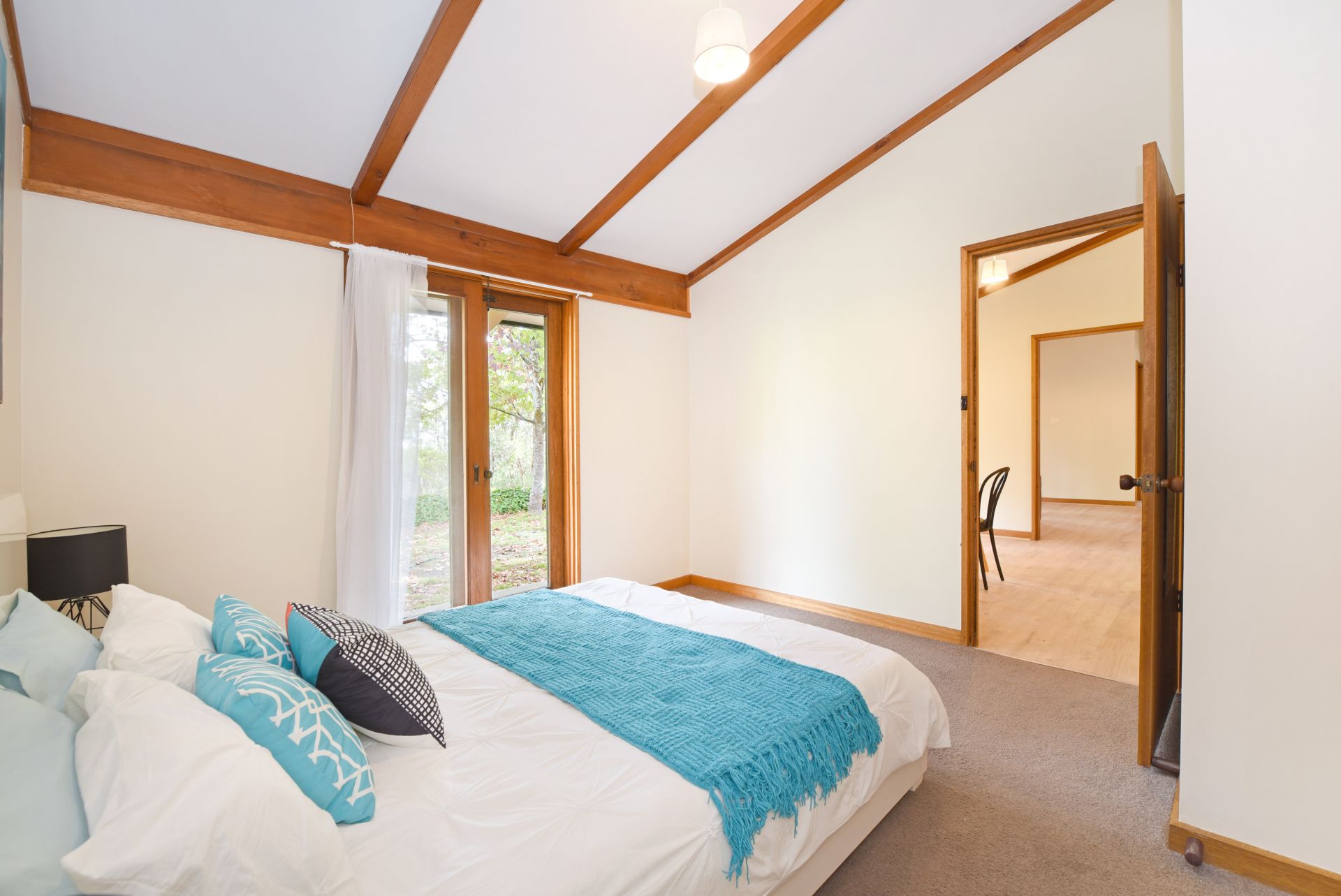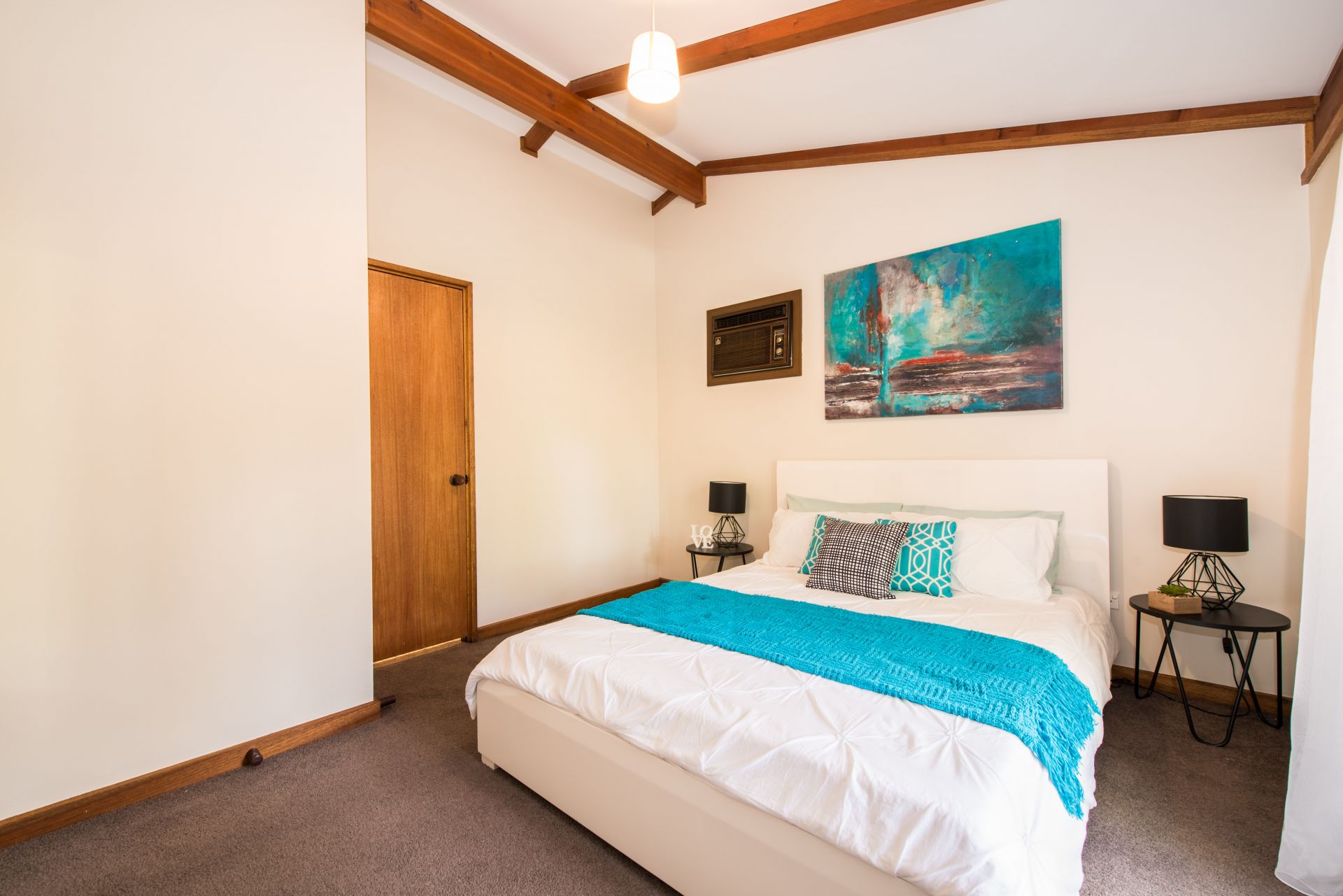 Stepping onto the property, you are sitting on a grand 900m of land (approx.) Inside are pitched ceilings throughout creating height and letting natural light flow through. Each bedroom has access to outside providing independence for guests. The master bedroom has access to the 2 way bathroom, room for a stand alone wardrobe and a air-conditioning unit for year round comfort. Bedrooms 2 and 3 both provide built in robes. The bathroom is 2 way accessible and has a separate toilet for added convenience.