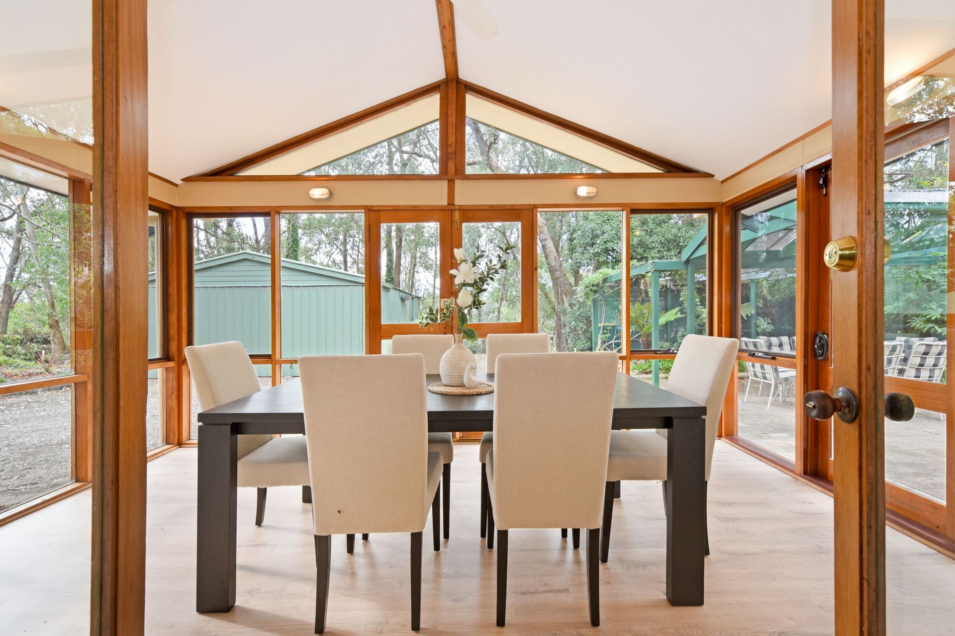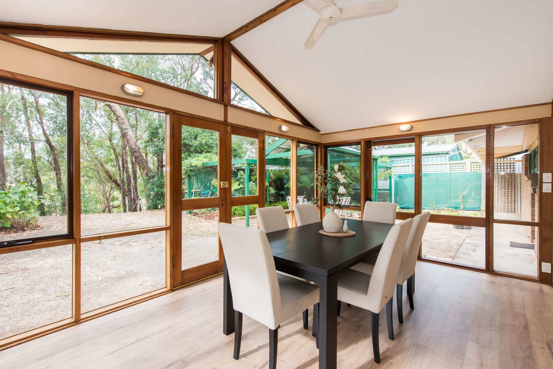 The pinnacle of this home is the sun room with wrap around windows over looking the bush. Currently used as a formal dining room. Wow guests in this stunning ambience while enjoying a home cooked meal, good company and good wine. Stepping outside, an array of storage, entertaining and gardening areas awaits you! The undercover entertaining area provides a seamless transition from inside entertaining to outside for when your guests want to enjoy those balmy summer nights. A double garage with power connected provides ample space for the toys with a connecting shed for the workshop, which could be turned into an office quite easily. A fernery and lean to are a great space for your potted plants and raised vegetable garden.