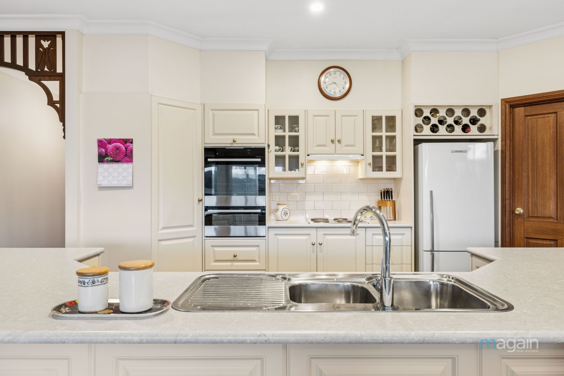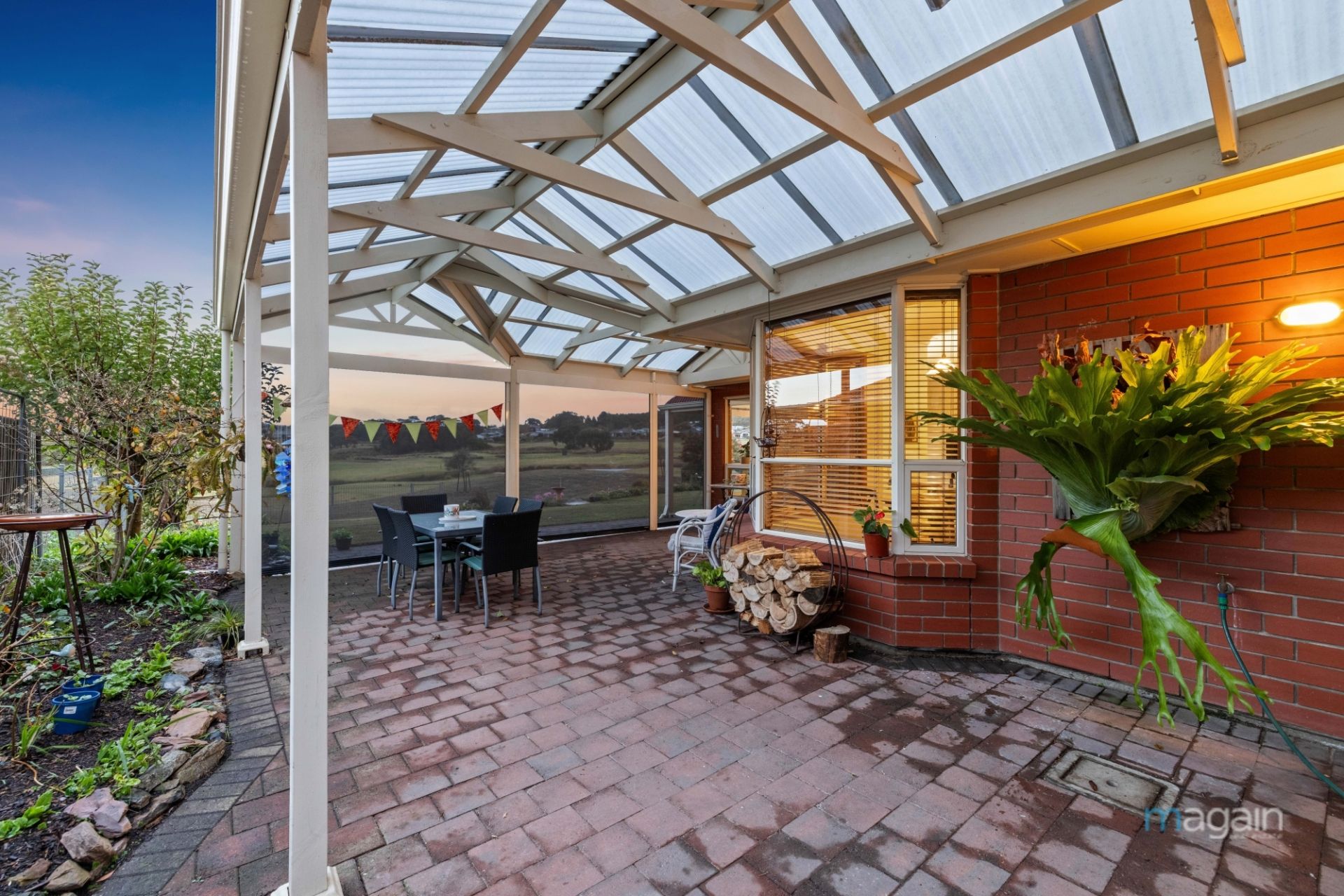 Set on a generously sized 1,000m2 allotment that has been very well established with easy care gardens both front and back, the home was built by the current and original owners in 2002. The steel framed home is set back off the road and boasts a Bluestone façade with a bull-nose front verandah that gives a welcoming first impression.