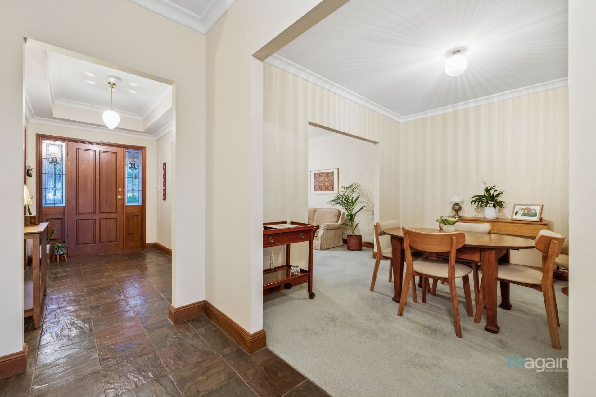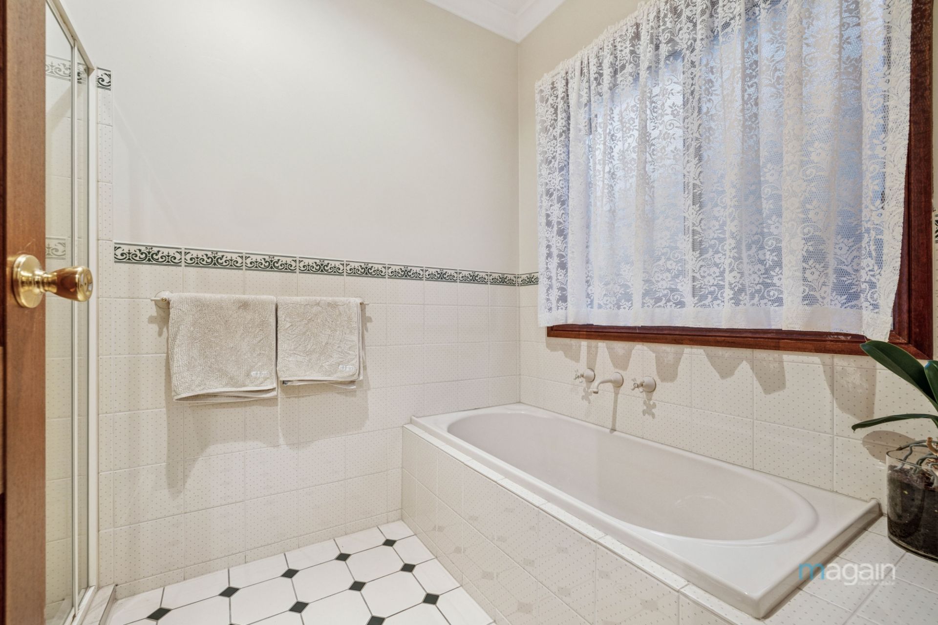 The separate tiled entrance flows into the lovely formal lounge and adjacent formal dining room that is located in the front section of the home. On the other side of the entry is access into the large main bedroom that comes with a bay window that frames an outlook of the front garden, a walk-in robe and a very neat ensuite bathroom.