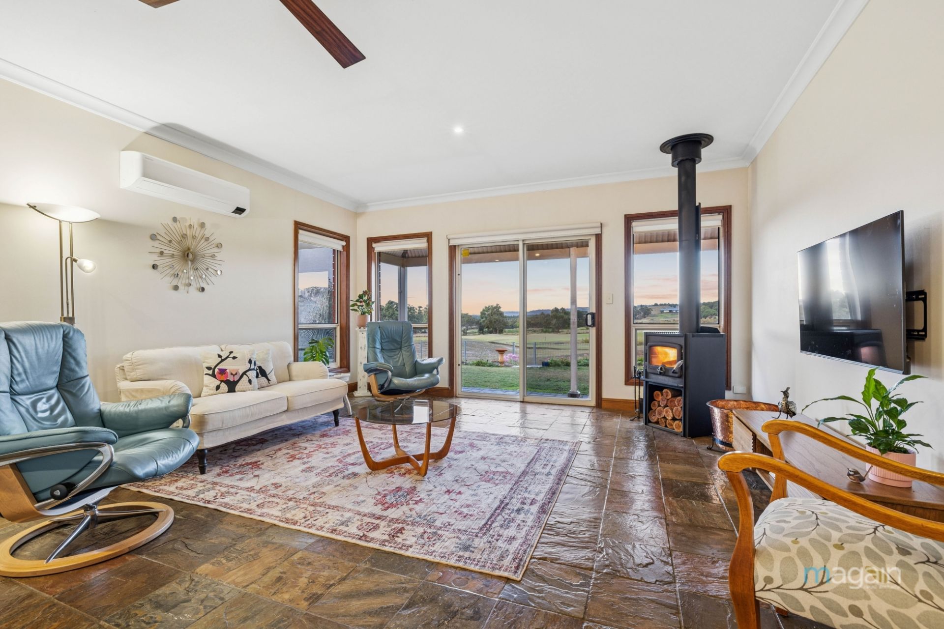 At the rear of the home, you will love the open plan aspect to the kitchen and family room section of the home. The well appointed galley style kitchen offers plenty of bench and cupboard space including a corner walk-in pantry. There is a dishwasher, a stainless steel oven, an electric cook top with range hood and a double sink. The kitchen overlooks the adjacent casual meals area and the spacious family room that comes with a ceiling fan, a large split system air conditioning unit and a slow combustion wood heater to ensure that you, your family and friends are kept comfortable all year round.