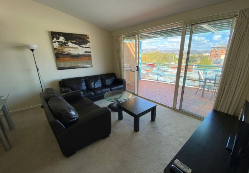 > Living area has modern furnishings and direct access to the private balcony featuring views overlooking the spectacular parklands!