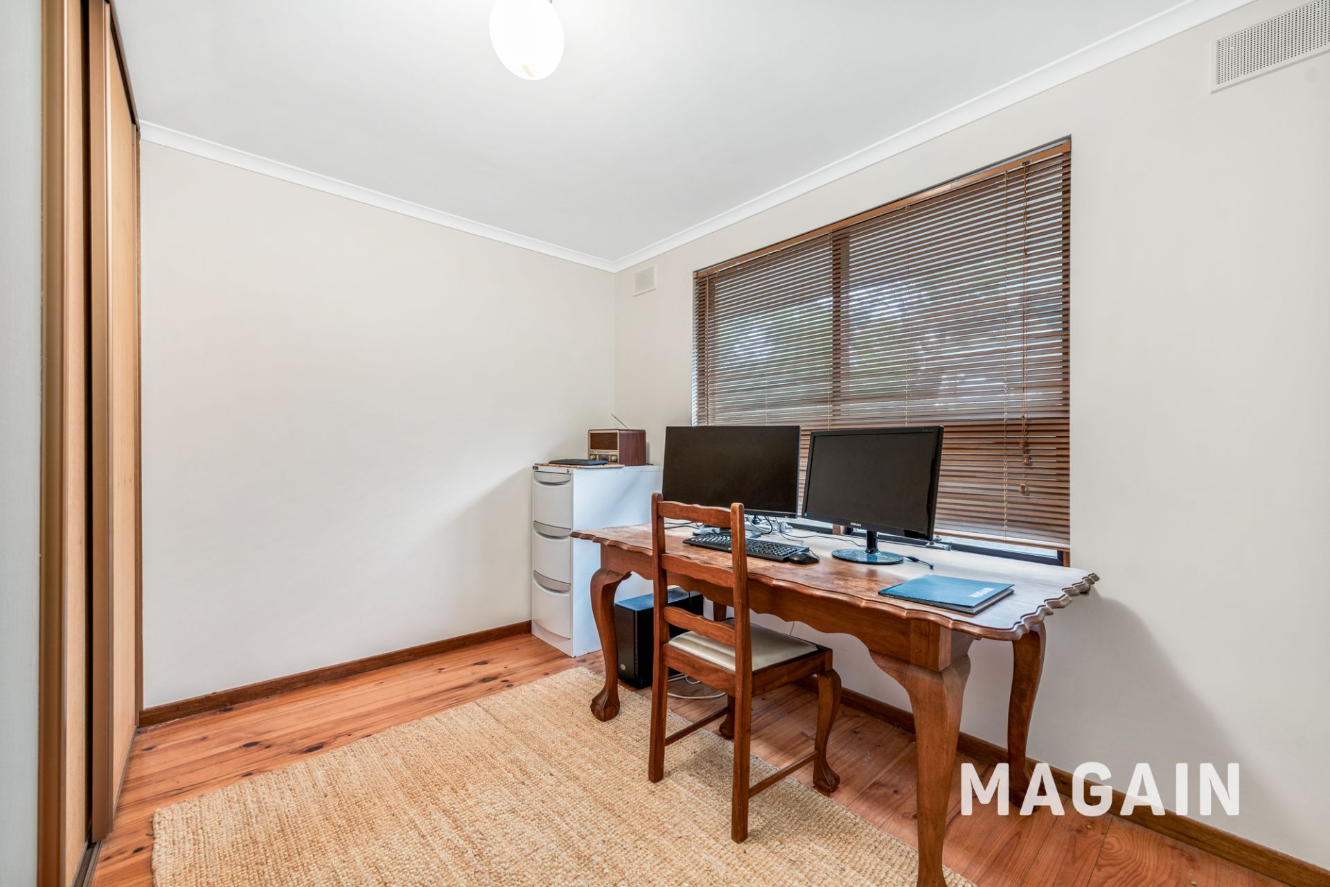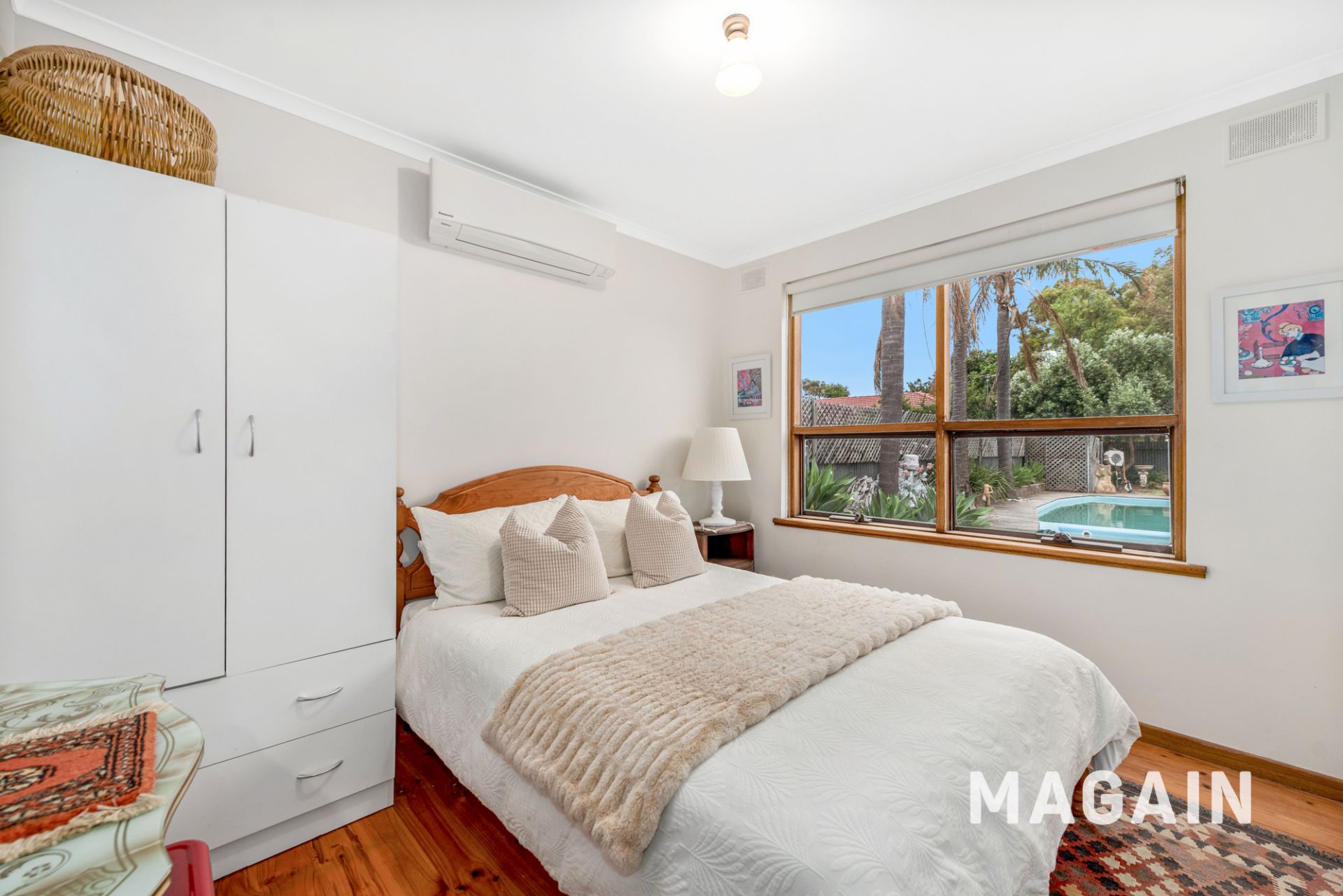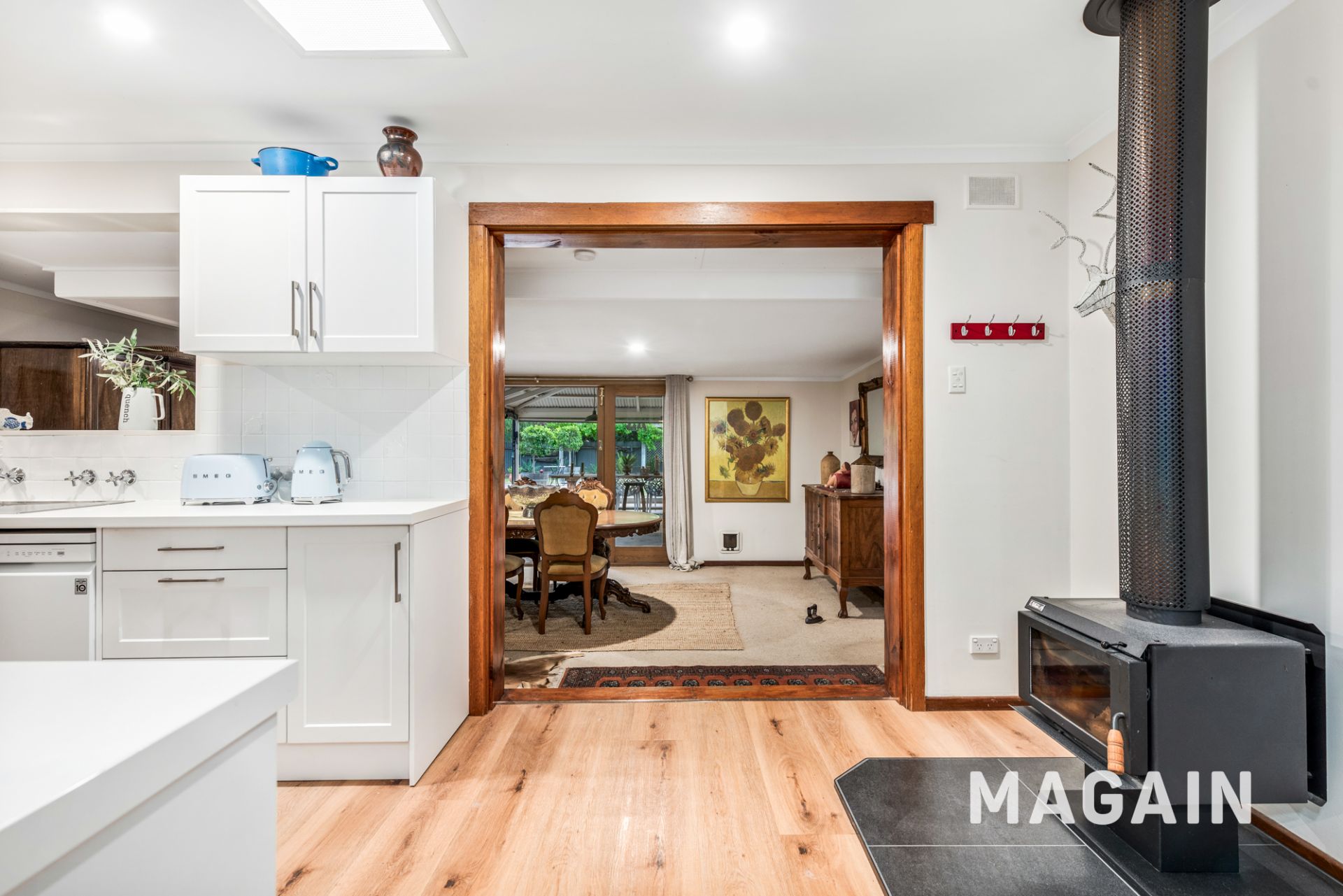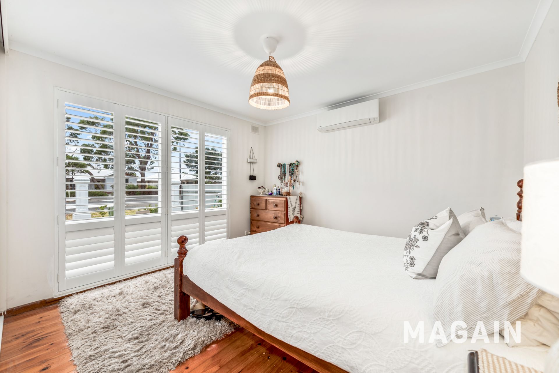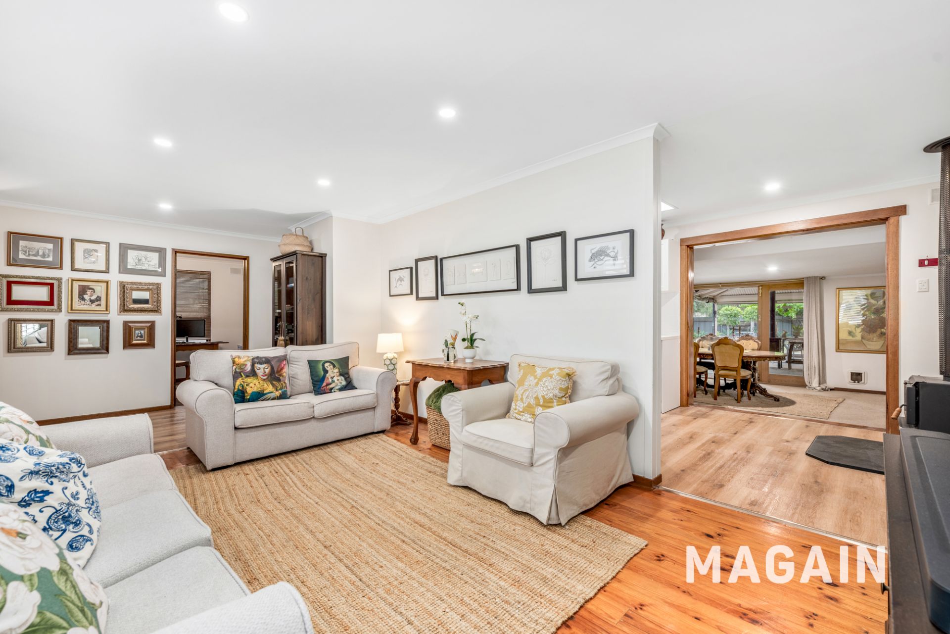 Set behind a manicured frontage with excellent off-street parking, the home offers a comfortable and highly functional layout designed for relaxed everyday living. The front lounge is beautifully enhanced by plantation shutters, timber-look flooring and a split system air conditioner and combustion heater, creating a welcoming space to unwind.