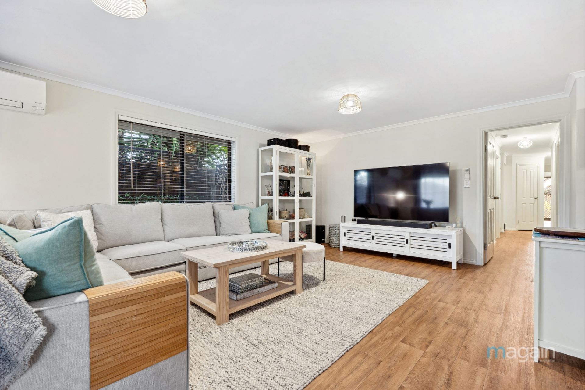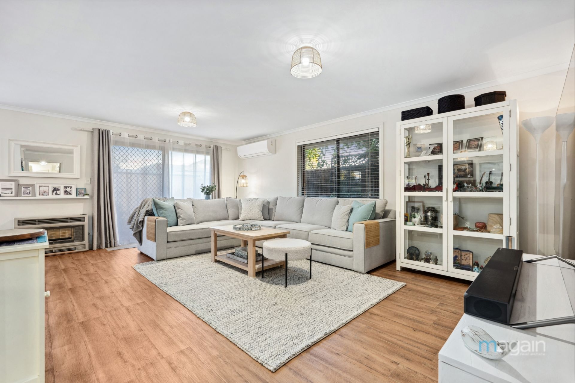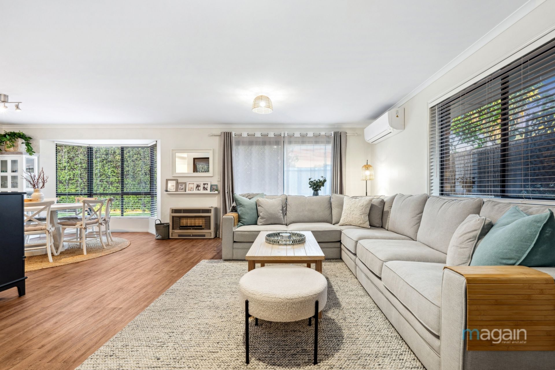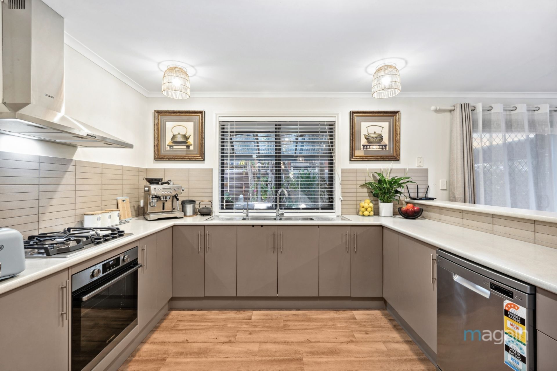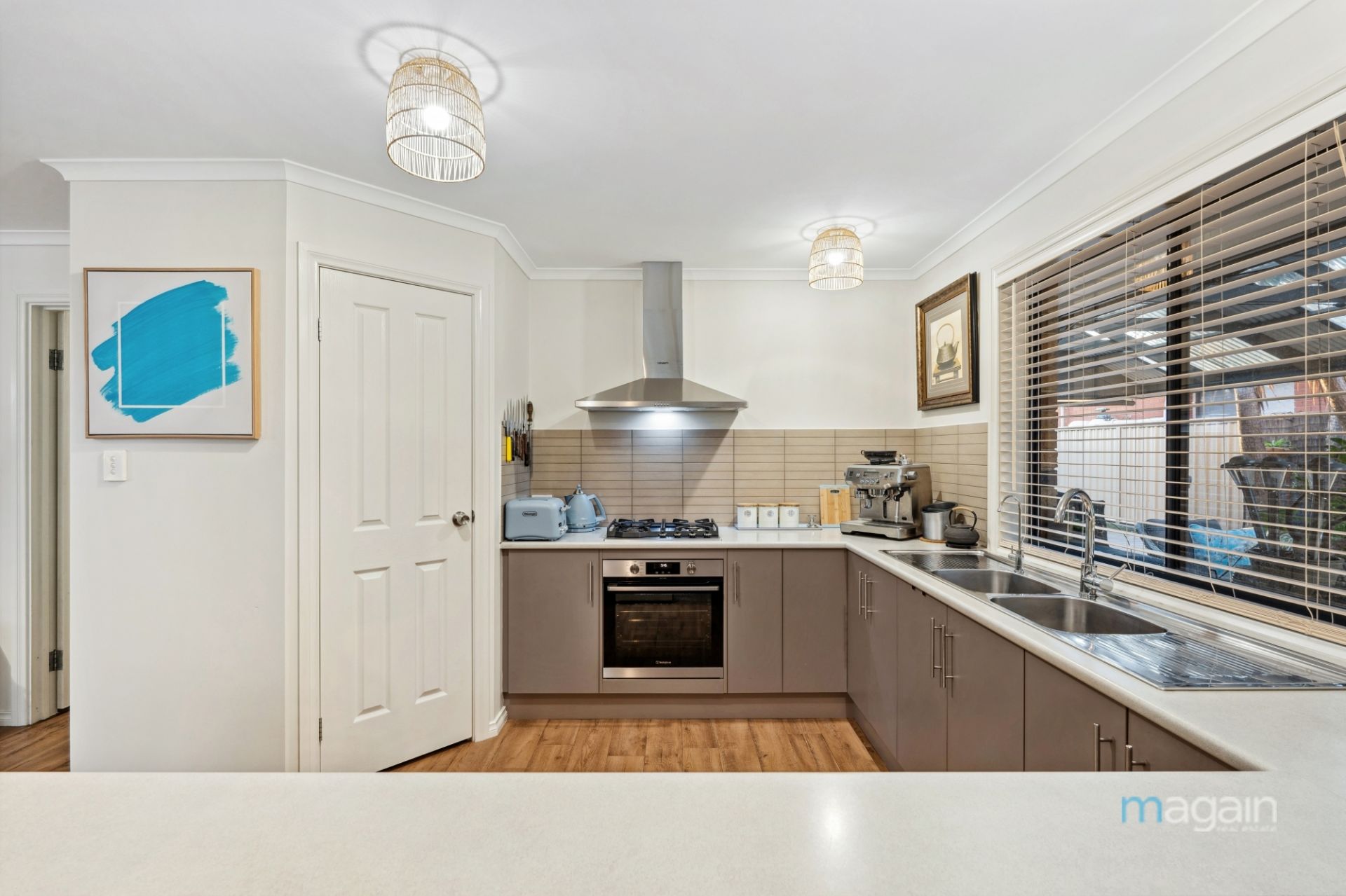 At the rear of this perfectly presented home is a spacious open plan living area that comes with split system air conditioning and gas heating. There is a very well appointed and good sized kitchen that boasts stainless steel appliances including the oven, dishwasher and a gas cook top with range hood. There is a dual sink with a filter tap and good bench and cupboard space including a corner pantry.