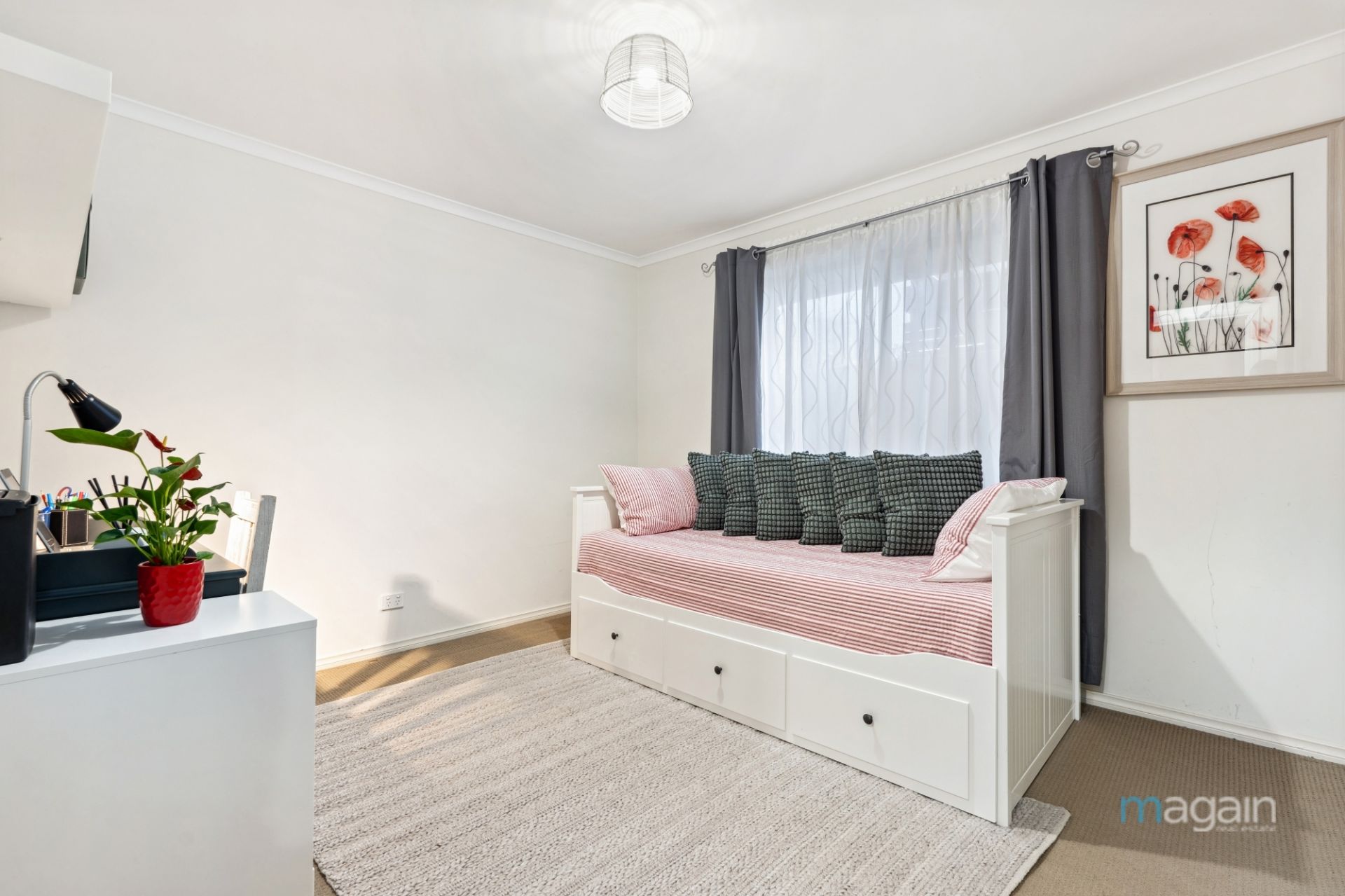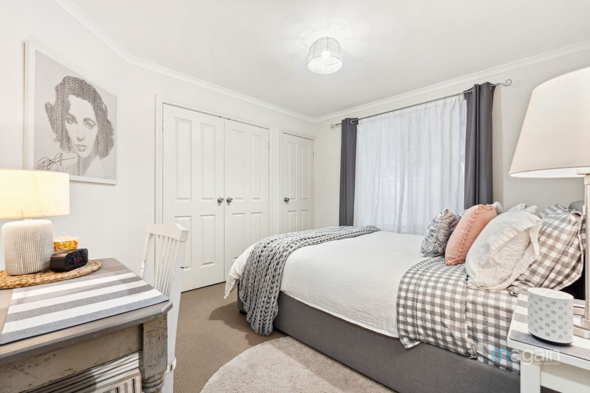 The separate entrance then flows down the hallway that provides access into the spacious main bedroom that is located at the front of the home. The main bedroom comes with a walk-in robe, a very neat private ensuite bathroom and has its own split system air conditioner. Roller shutters have been installed on the front window too.