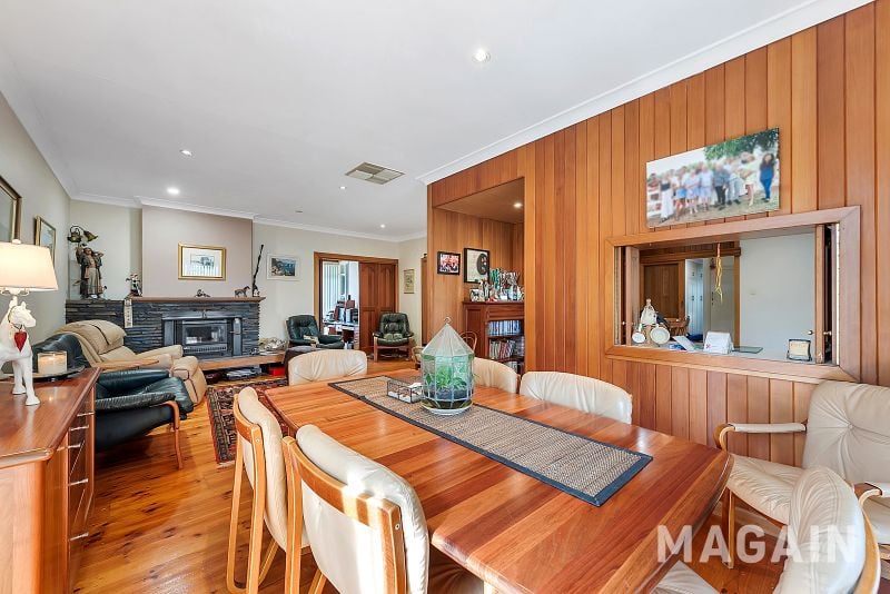 The home itself is warm and inviting, featuring three well-proportioned bedrooms. The main bedroom includes its own ensuite and built-in robes, while the additional bedrooms are thoughtfully equipped with ample storage, including a walk-in robe to bedroom two. A combustion heater creates a cosy atmosphere through the cooler months, complemented by ducted evaporative air conditioning to keep the home comfortable during summer.