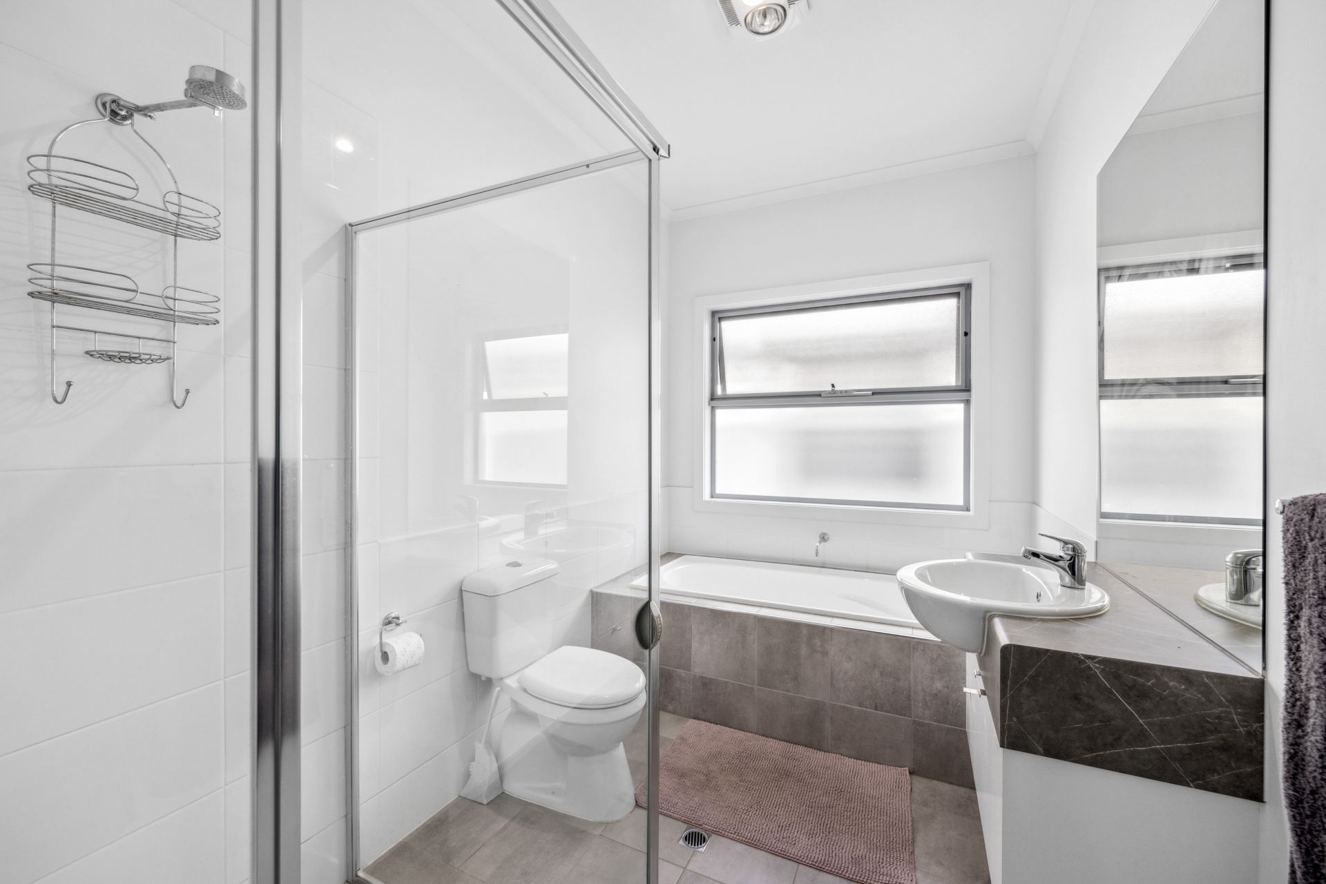 Set across two levels, the lower level is home to the large open plan kitchen, dining and living area, offering plenty of space for entertaining and relaxation. At the heart of the home is the kitchen, overlooking the open plan living area, it is equipped with stainless steel Bosch appliances, including a gas cooktop, electric oven and dishwasher, while large benchtops provide ample workspace for meal prep and the island bench offers breakfast bar seating for casual dining. The corner pantry ensures plenty of storage space for all your kitchen essentials, allowing you to keep everything organized and easily accessible. The spacious living area is filled with plenty of soft natural light, creating an inviting atmosphere for entertaining or cosy family movie nights. From the dining area, step outside through the sliding doors and discover a private courtyard, the ideal spot to enjoy your morning coffee or a meal under the stars in the evening. Completing the lower level is the laundry with lots of space & access to the carport, plus a powder room for added convenience.