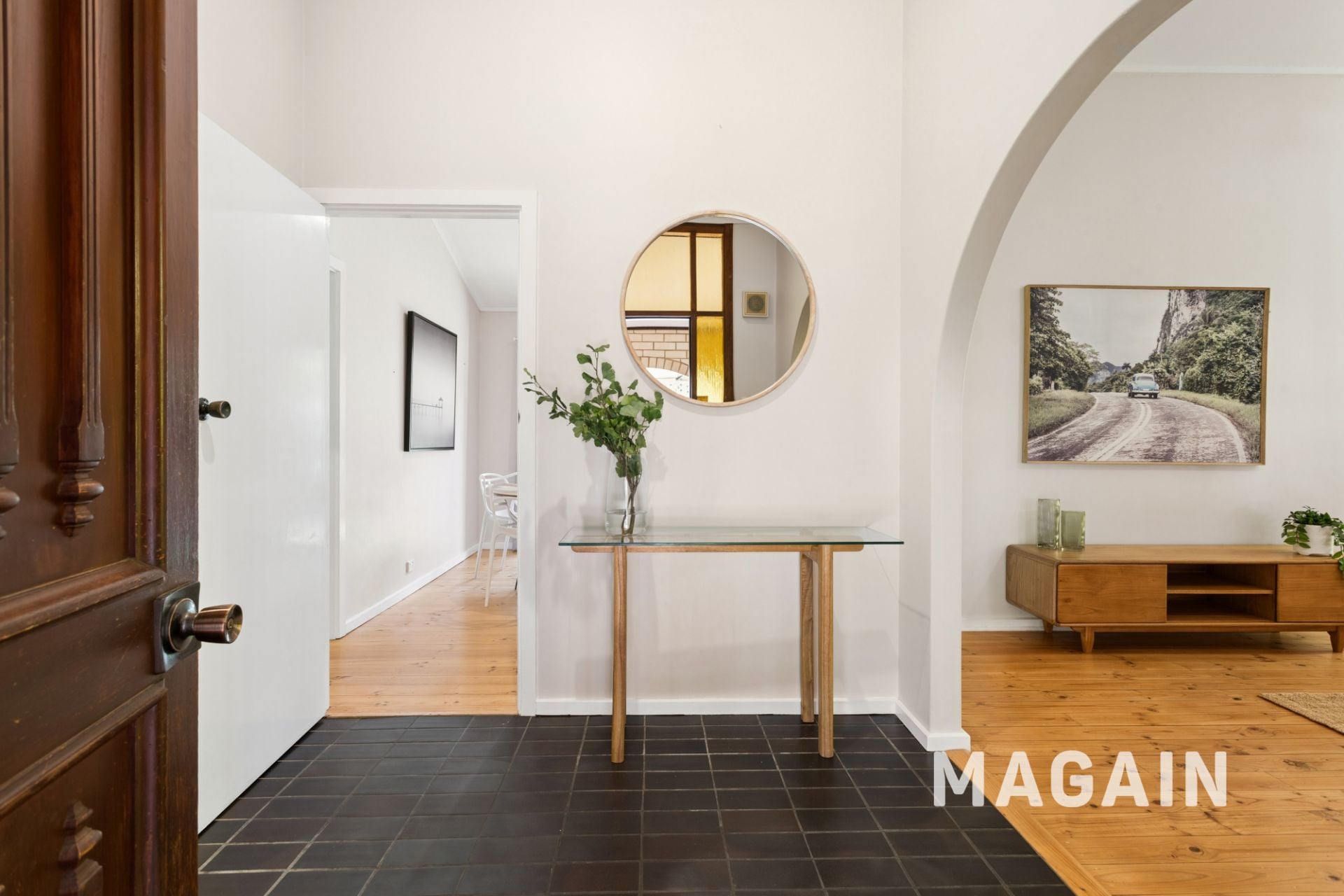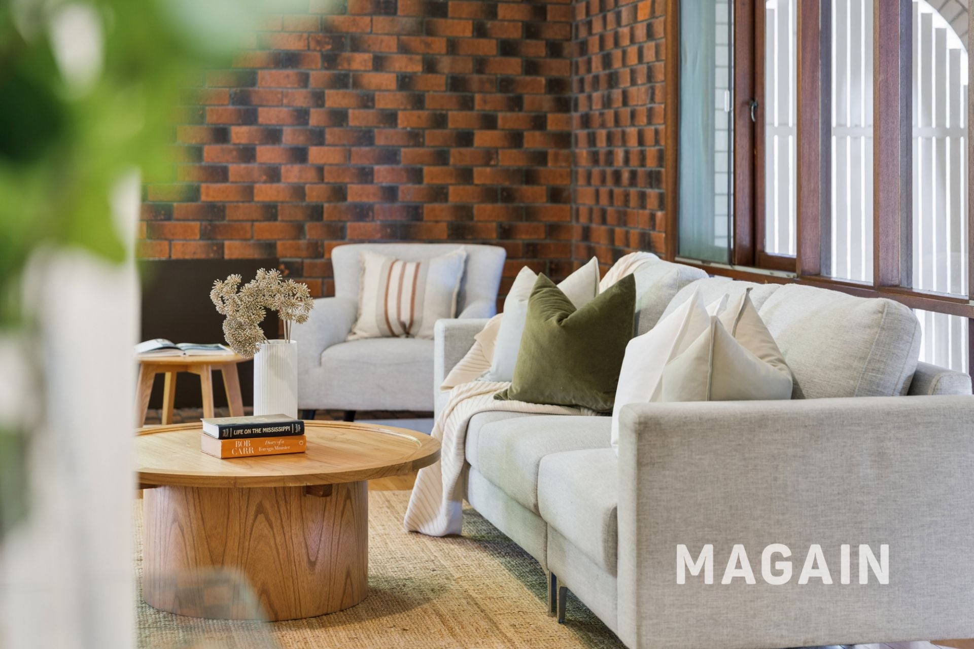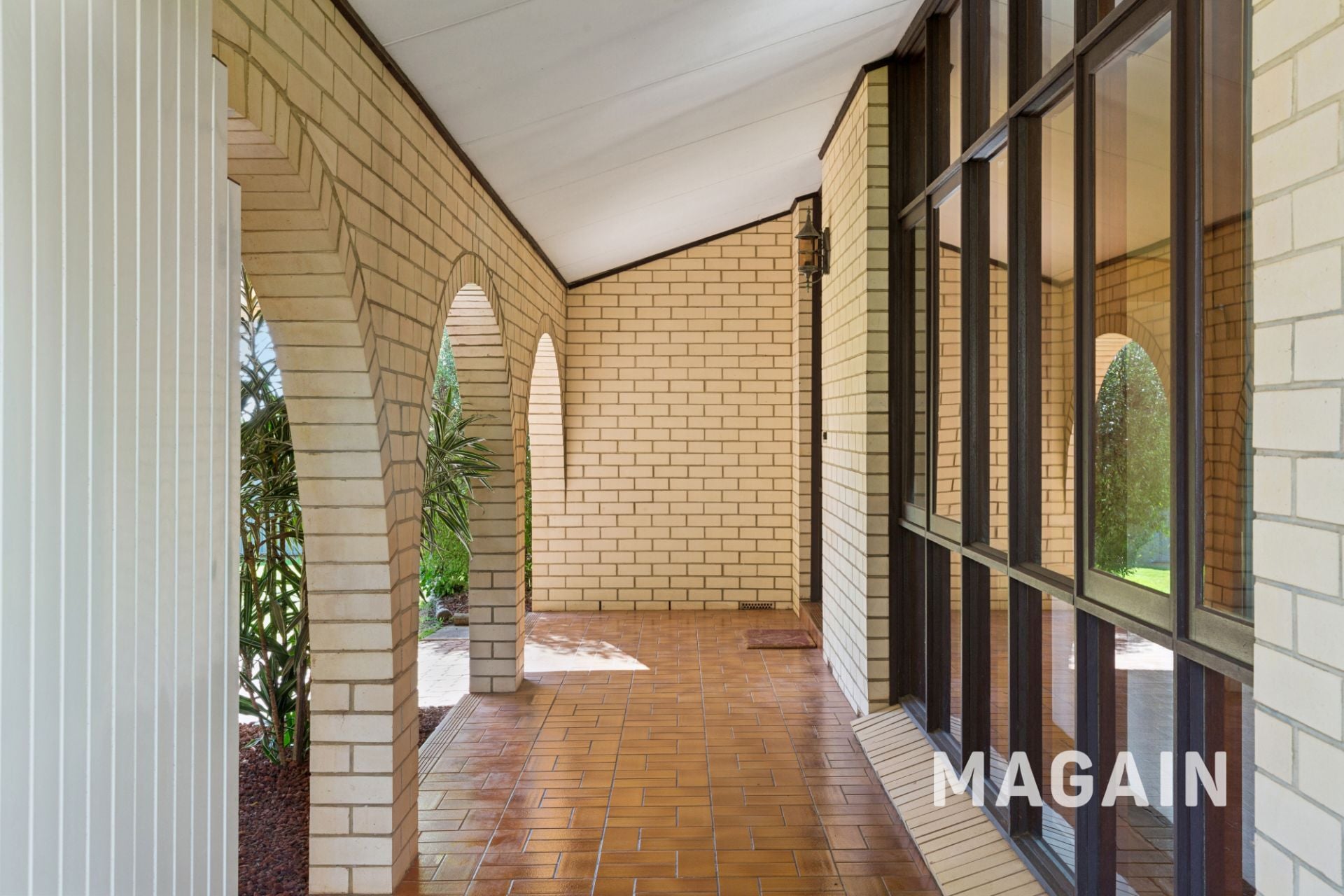 Tucked away from the street, the home provides a sense of privacy and security, with attractive kerbside appeal welcoming you via a double driveway, perfect for off-street parking, leading to two secure carport spaces. Step inside to a spacious foyer, where lofty ceilings enhance the sense of openness, while the exposed brick wall and rich wood panelling create a warm, inviting first impression that instantly feels like home.