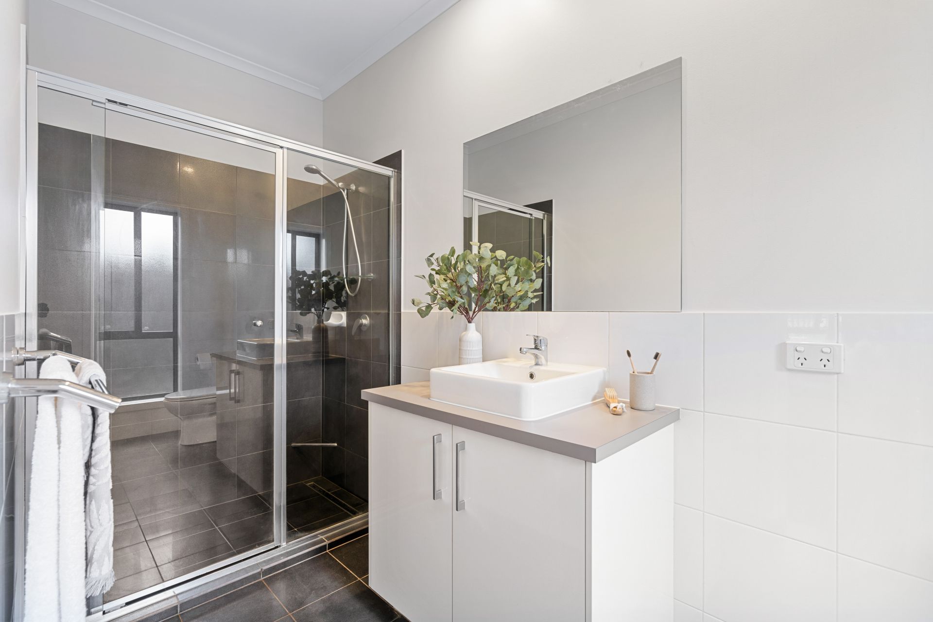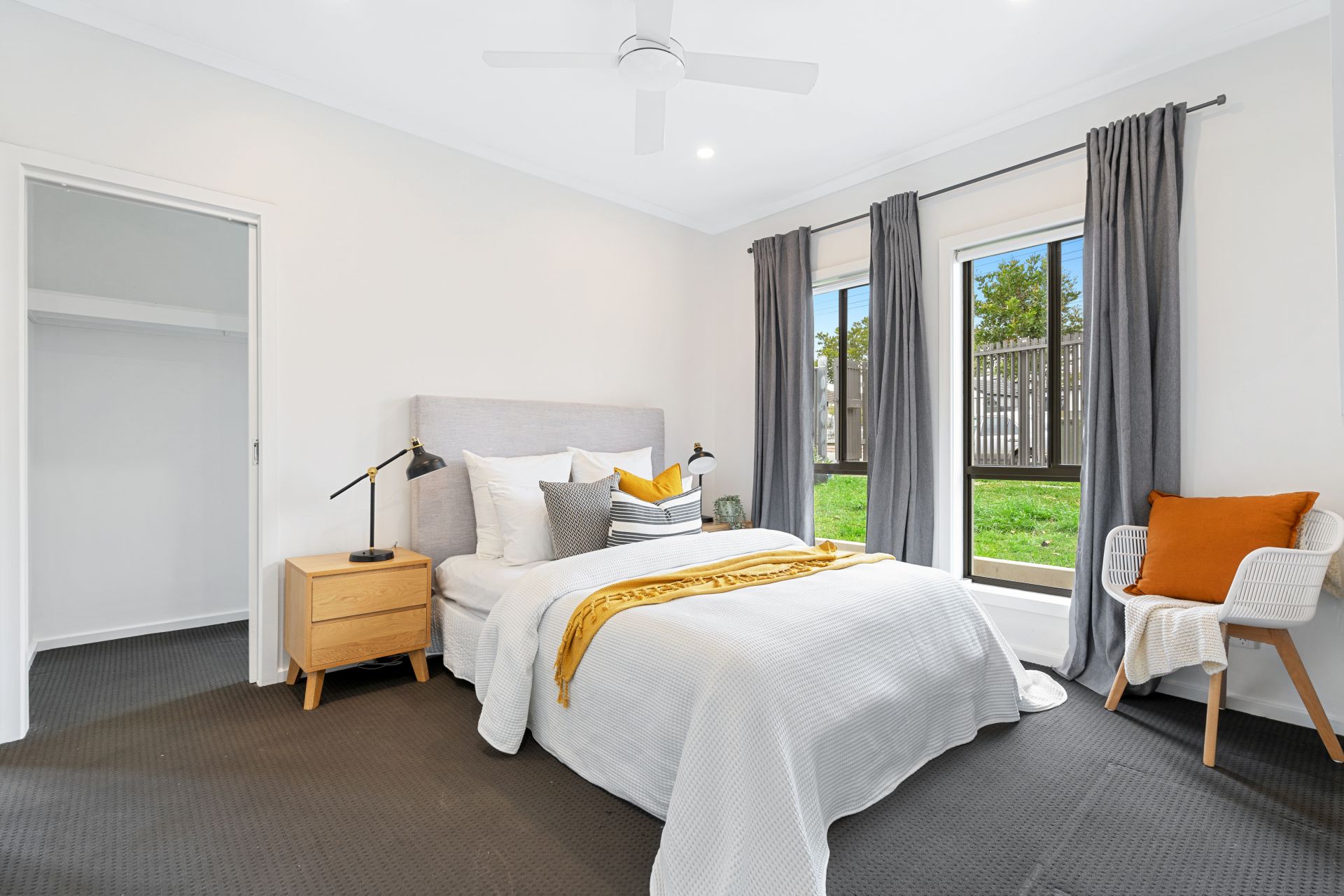 As you approach the home you will appreciate the security provided by the secure, powered gate. Entering the home you will also notice the noise reduced, thanks to the double glazed windows at the front of the home. The master bedroom at the front of the home is a great size, and comes equipped with a huge walk in wardrobe at the back of the room for maximum usage, and also a great size ensuite. Bedrooms two and three are also a fantastic size, each fitted with built in wardrobes. The open plan living area is the perfect place to unwind after a long day at work; the kitchen has an abundance of bench space and cupboard storage and comes with all the essential appliances, including gas cooktop and dishwasher. The kitchen overlooks the great size dining and family room, filled with natural light to give the room a homely feel. For year round comfort, split system air conditioning has been installed throughout the home.