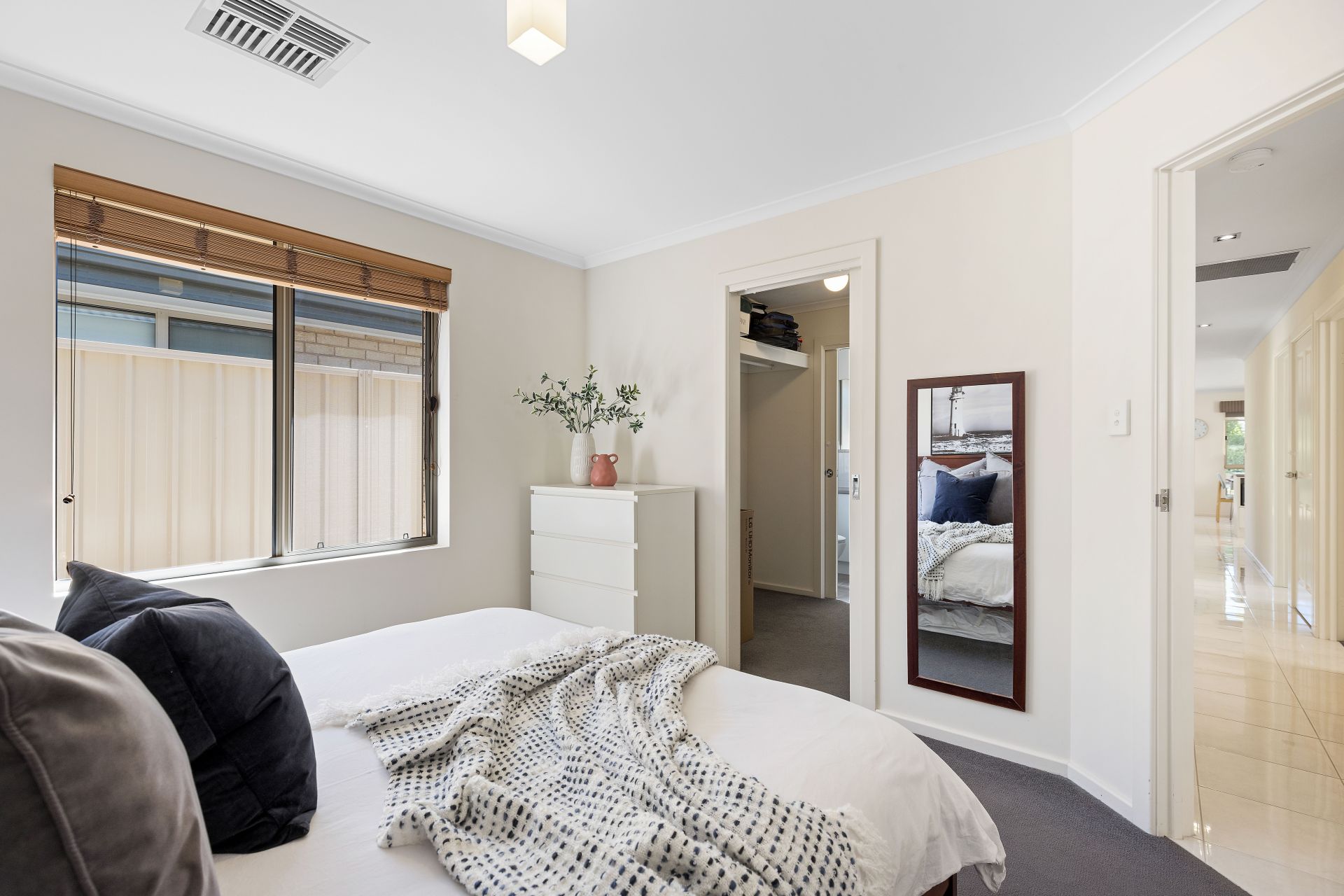 As you approach the home you will appreciate the sheer amount of off street parking, with the huge double garage and long, paved driveway. Entering the home you are greeted with a nice casual living area, the perfect place to set up a study nook or occasional lounge room. The master bedroom is in the centre of the home and is a great size, with a large walk in wardrobe and ensuite. The remaining two bedrooms also feature built in wardrobes.