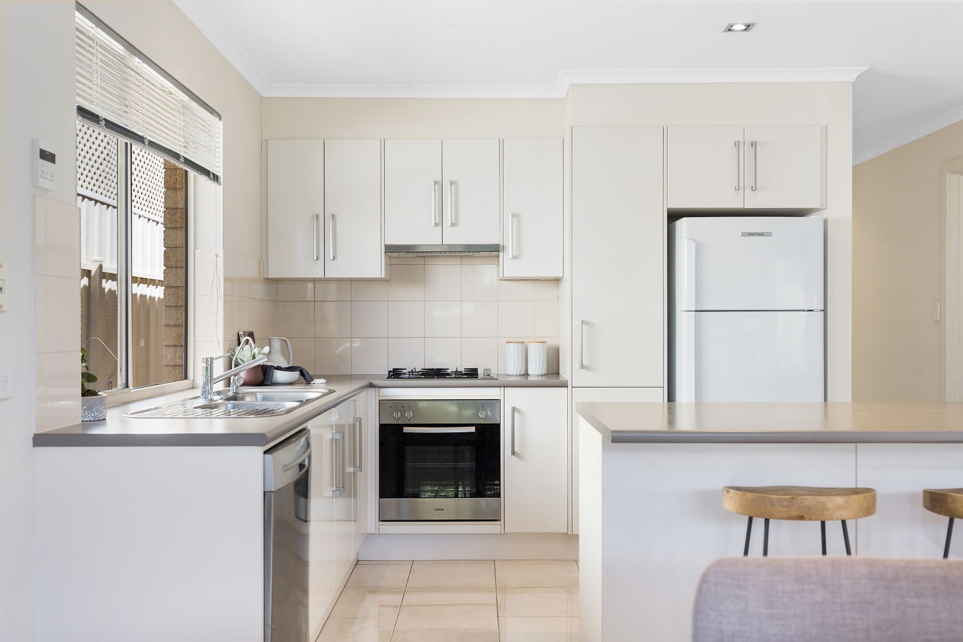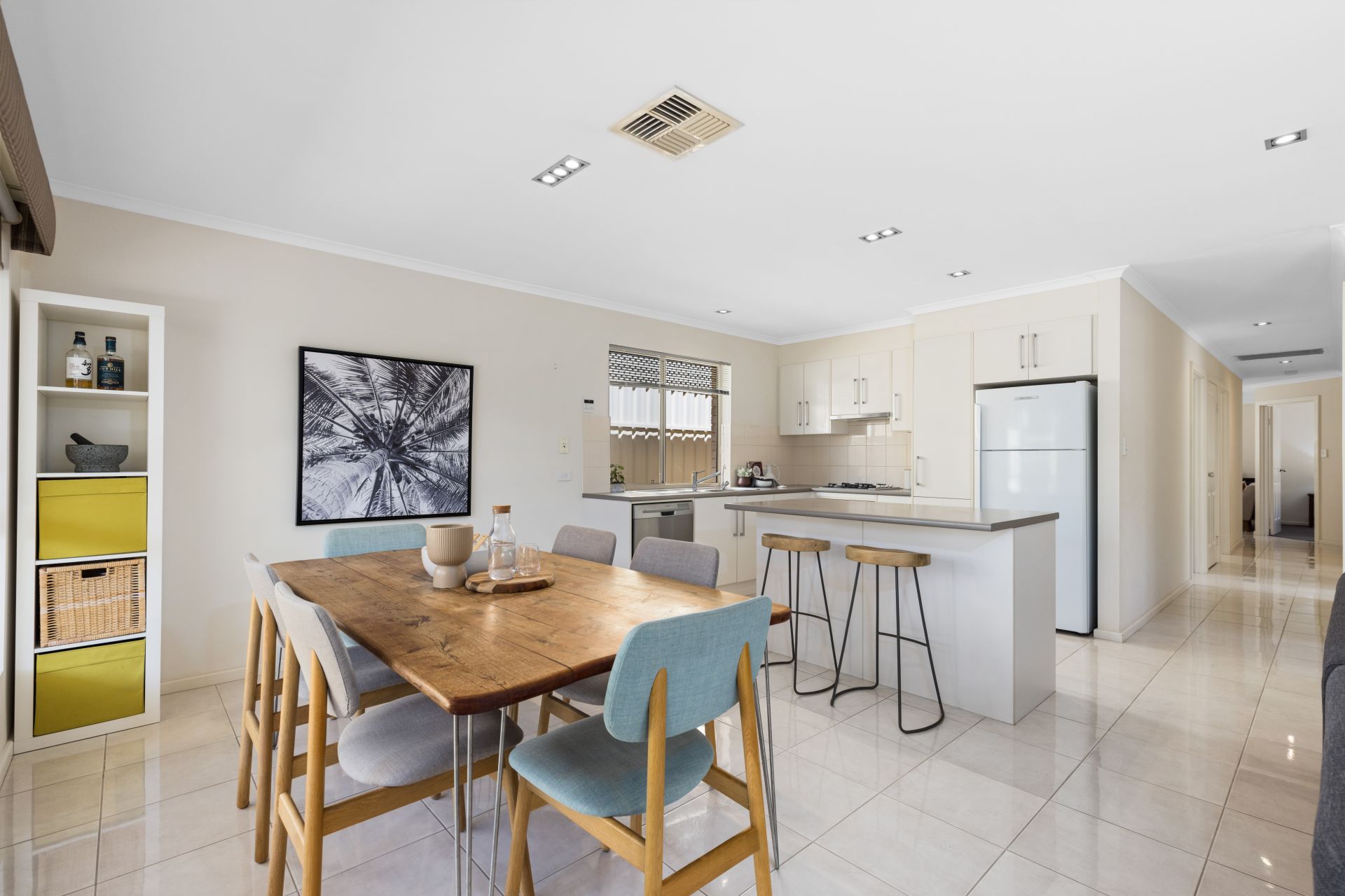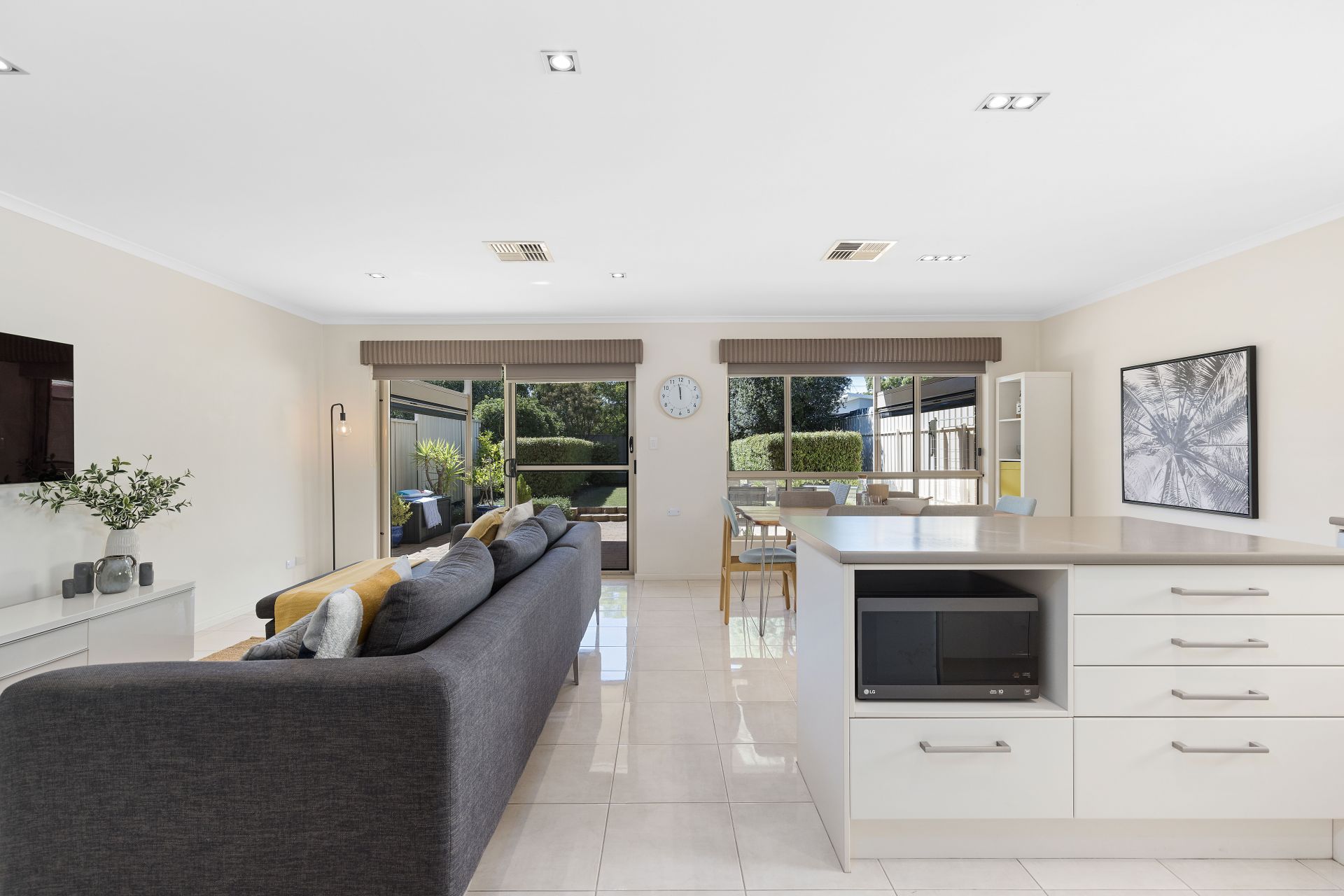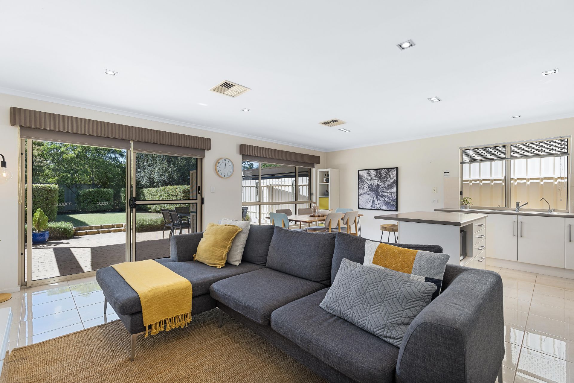 At the heart of the home is the open plan living space. The kitchen has an abundance of bench space and cupboard storage, with an island bench in the middle to make preparing meals a breeze, and features all the essential appliances including gas cooktop and dishwasher. The kitchen overlooks the dining and living space, making hosting family and friends so much more fun. For year round comfort, ducted reverse cycle air conditioning has been installed throughout the home.