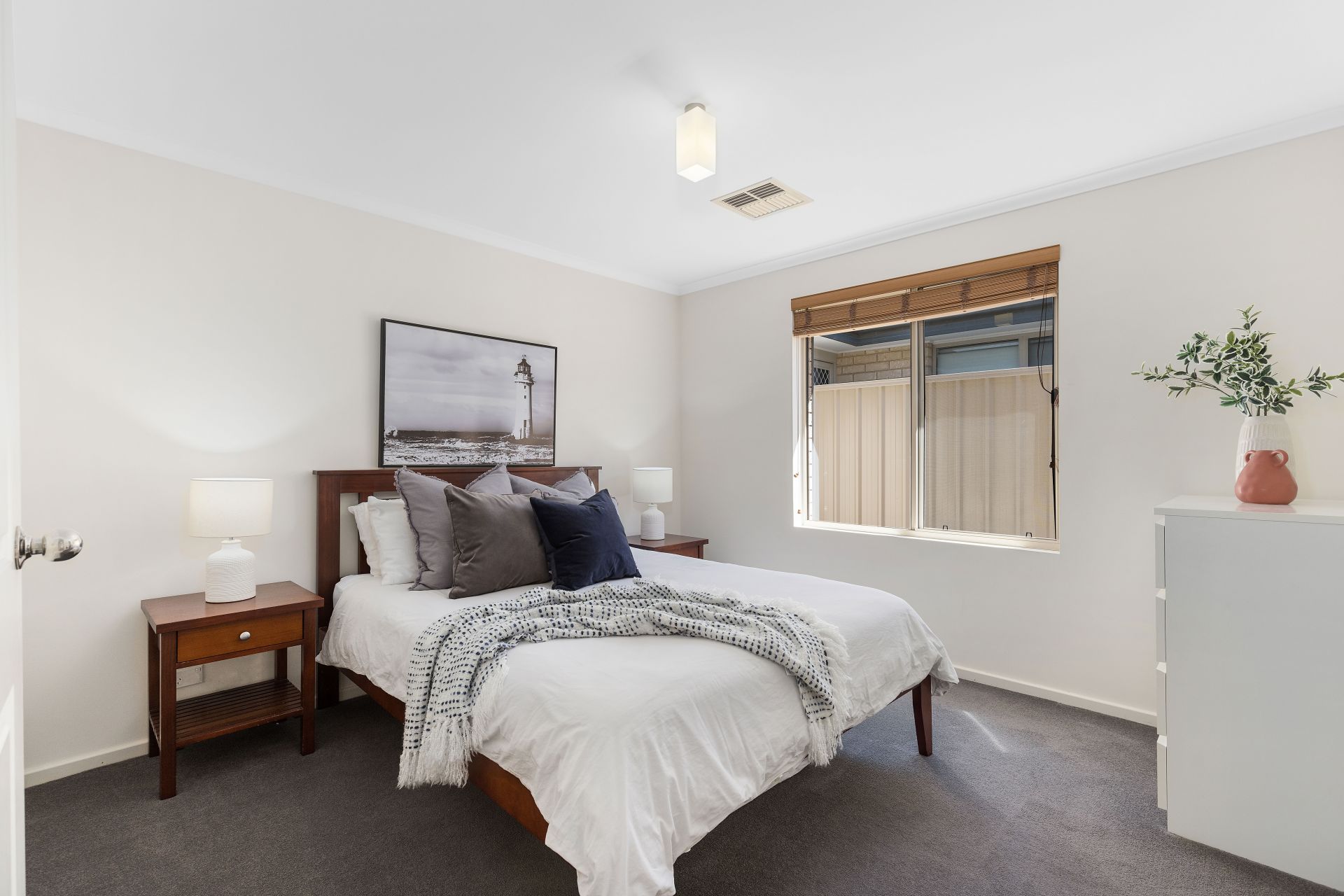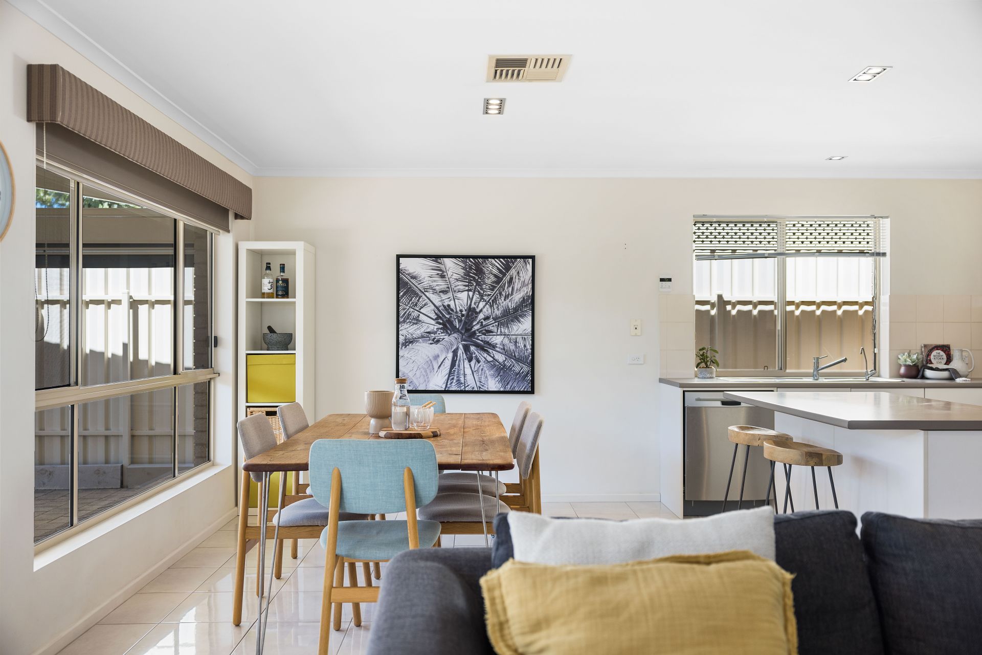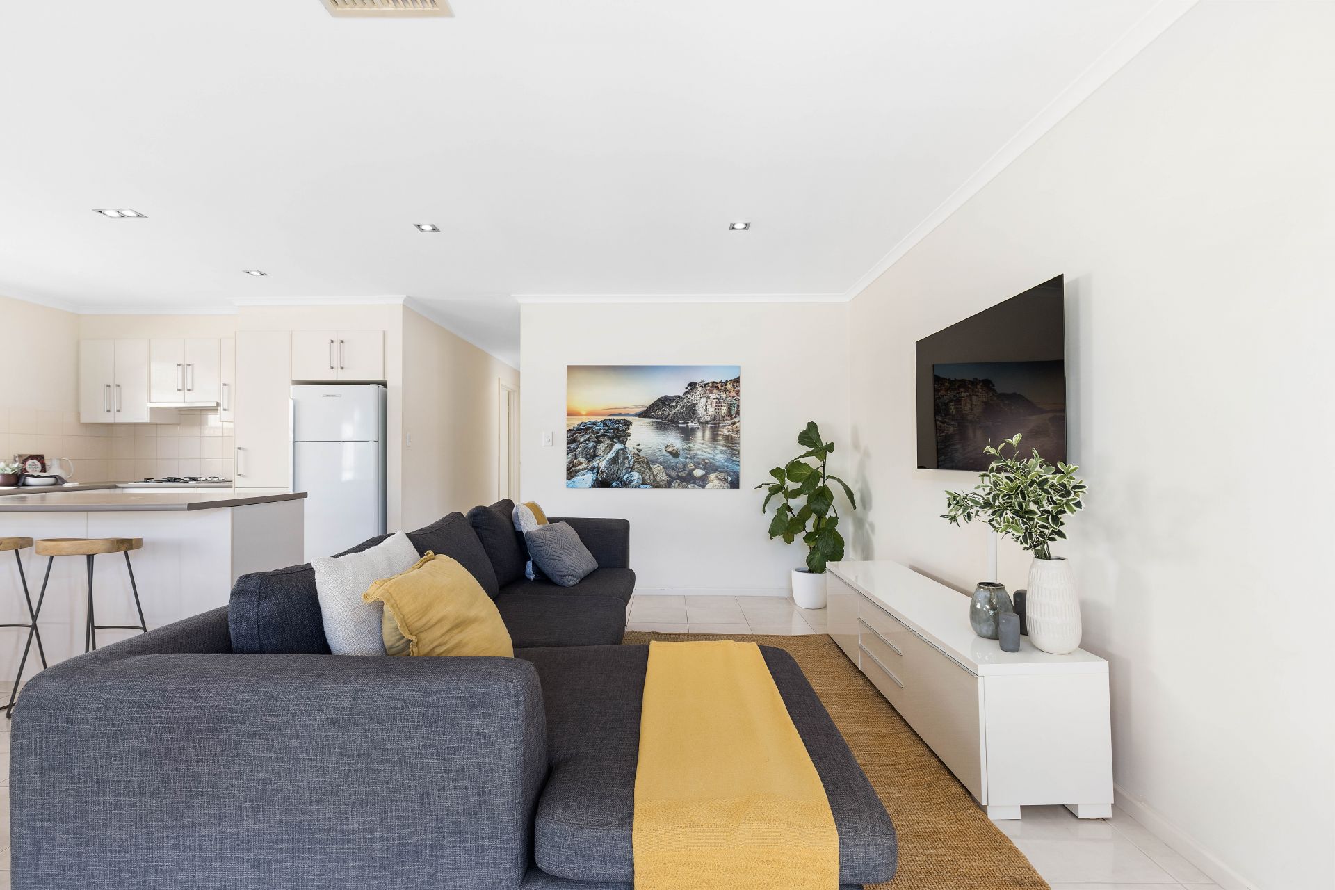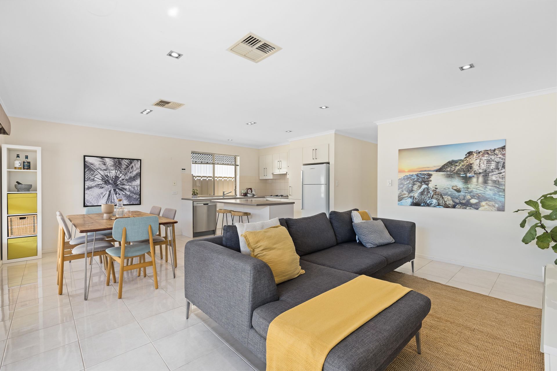 At the heart of the home is the open plan living space. The kitchen has an abundance of bench space and cupboard storage, with an island bench in the middle to make preparing meals a breeze, and features all the essential appliances including gas cooktop and dishwasher. The kitchen overlooks the dining and living space, making hosting family and friends so much more fun. For year round comfort, ducted reverse cycle air conditioning has been installed throughout the home.