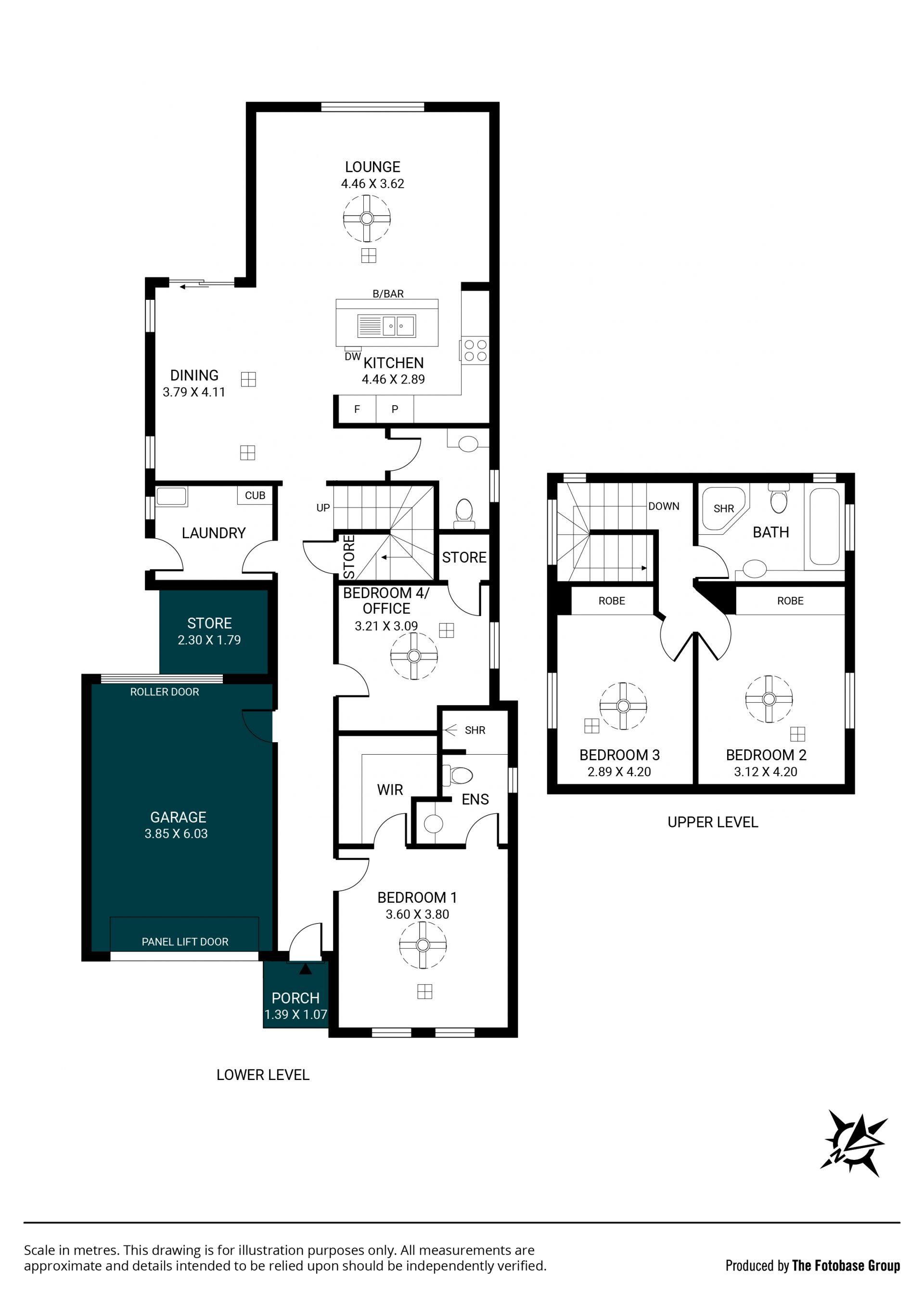 Upon entry, a welcoming porch leads into the lower level where you will find a generously sized master suite positioned privately at the front of the home. Bedroom one is complete with a walk-in robe, private ensuite, and ceiling fan, creating a comfortable and well-appointed sanctuary.