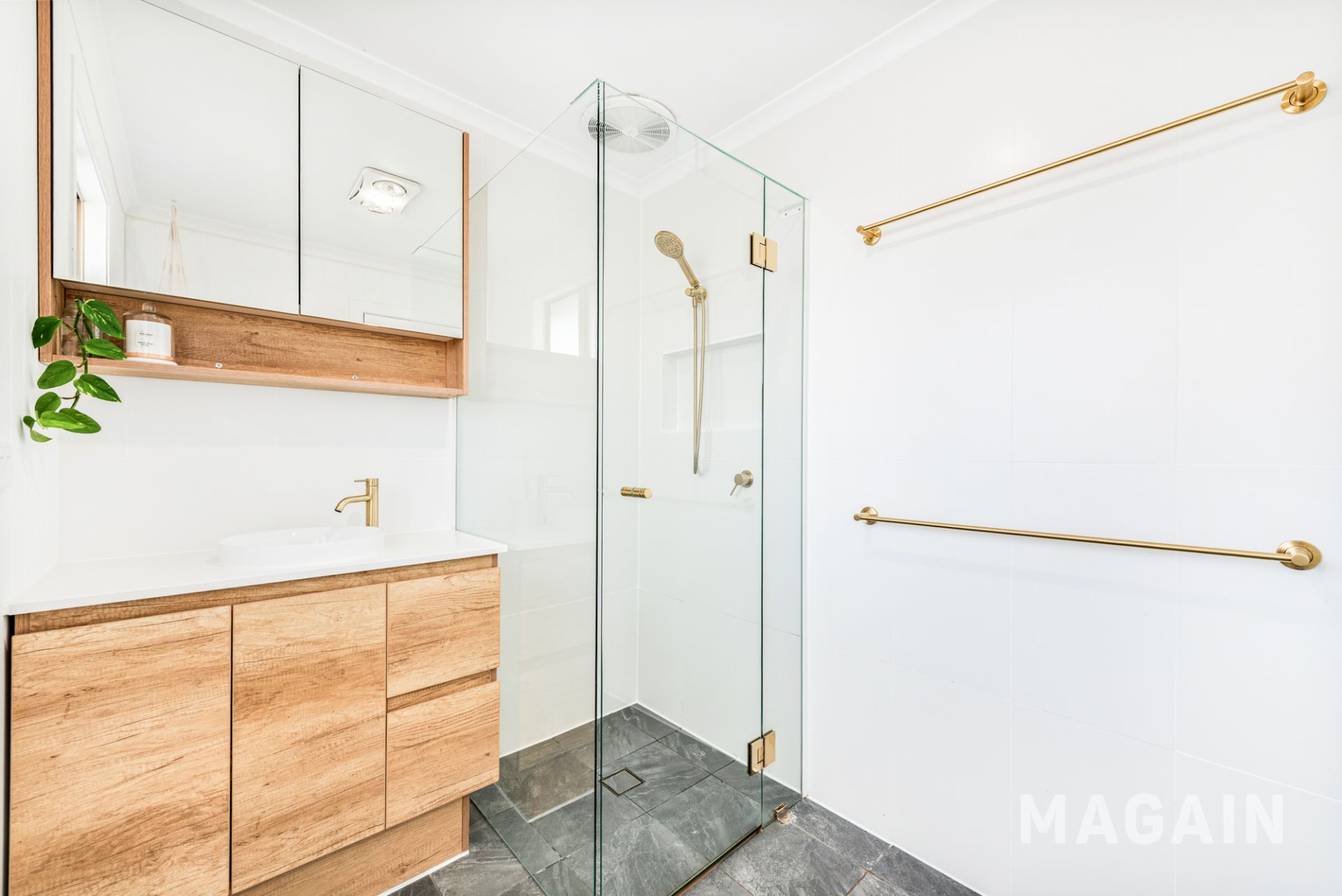 The large kitchen offers generous storage and quality appliances, including a dishwasher, making it ideal for family living or entertaining. The main bedroom on this level features a walk-in robe and a beautifully renovated ensuite, thoughtfully positioned for privacy and convenience, while an additional toilet nearby provides added practicality for guests