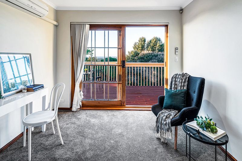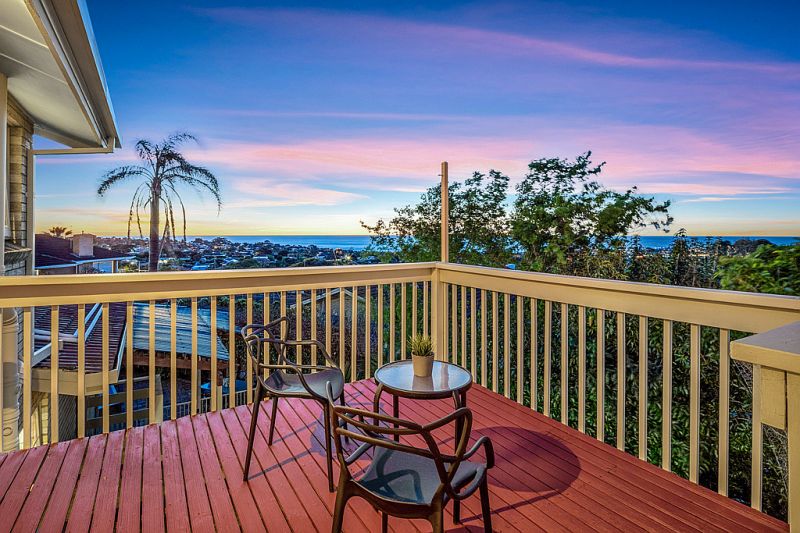 Upstairs there are three huge bedrooms, the master has a massive walk in wardrobe and updated ensuite, and the two remaining bedrooms have built in wardrobes. The upstairs landing area is a perfect place for a study and flows outside onto the deck, with views out over the city and the sea. For year round comfort there are multiple split system air conditioners positioned throughout the home. Other features include fresh carpet and fresh paint.