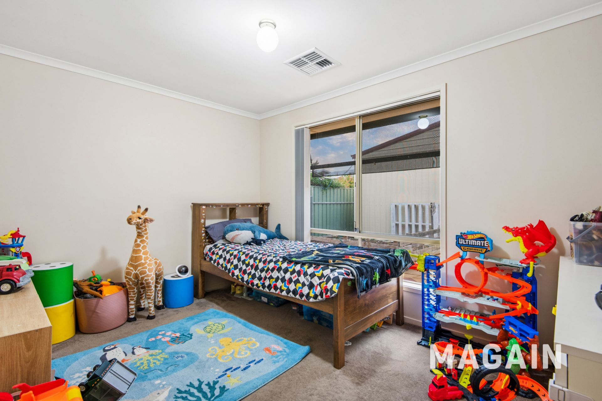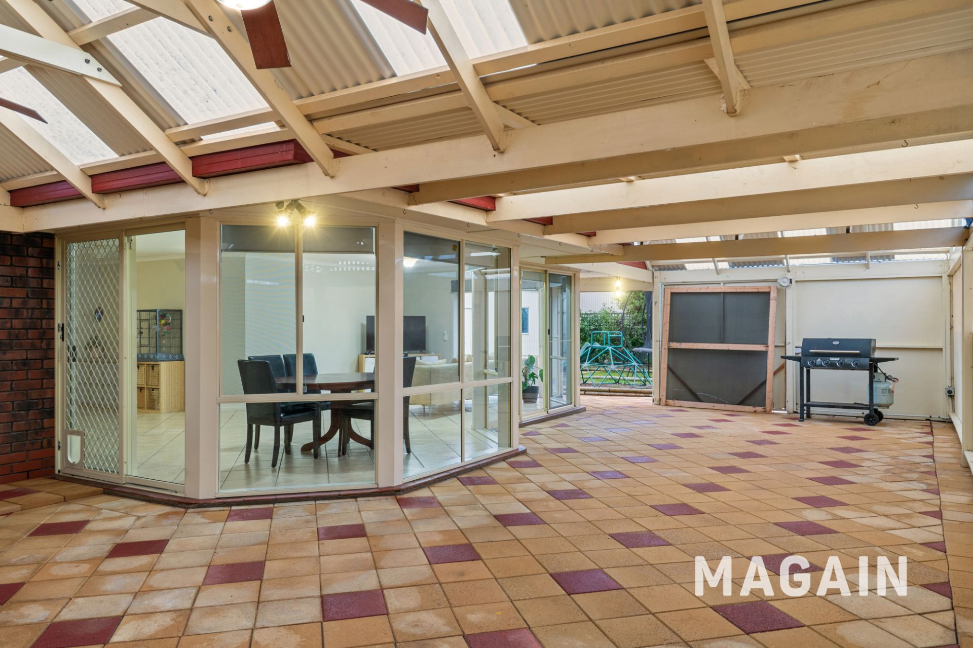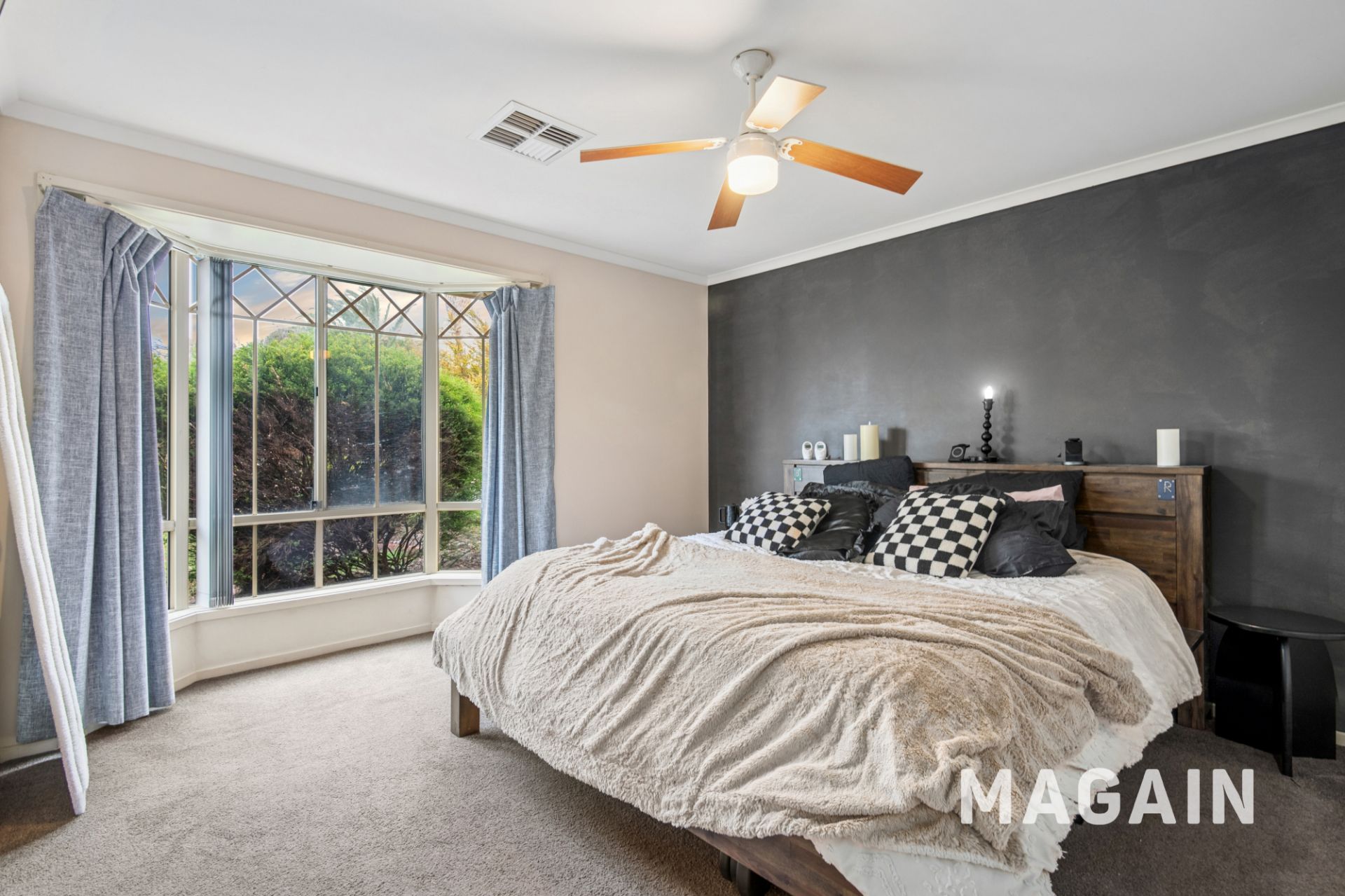 At the heart of the home, the large kitchen offering ample storage including corner pantry, gas cook top, dishwasher and a breakfast bar overlooking the dining and family zones, creating an easy hub for daily life or entertaining. Comfort is assured year-round with ducted reverse-cycle air conditioning, ceiling fans throughout, and the energy efficiency of solar panels adding valuable long-term savings.