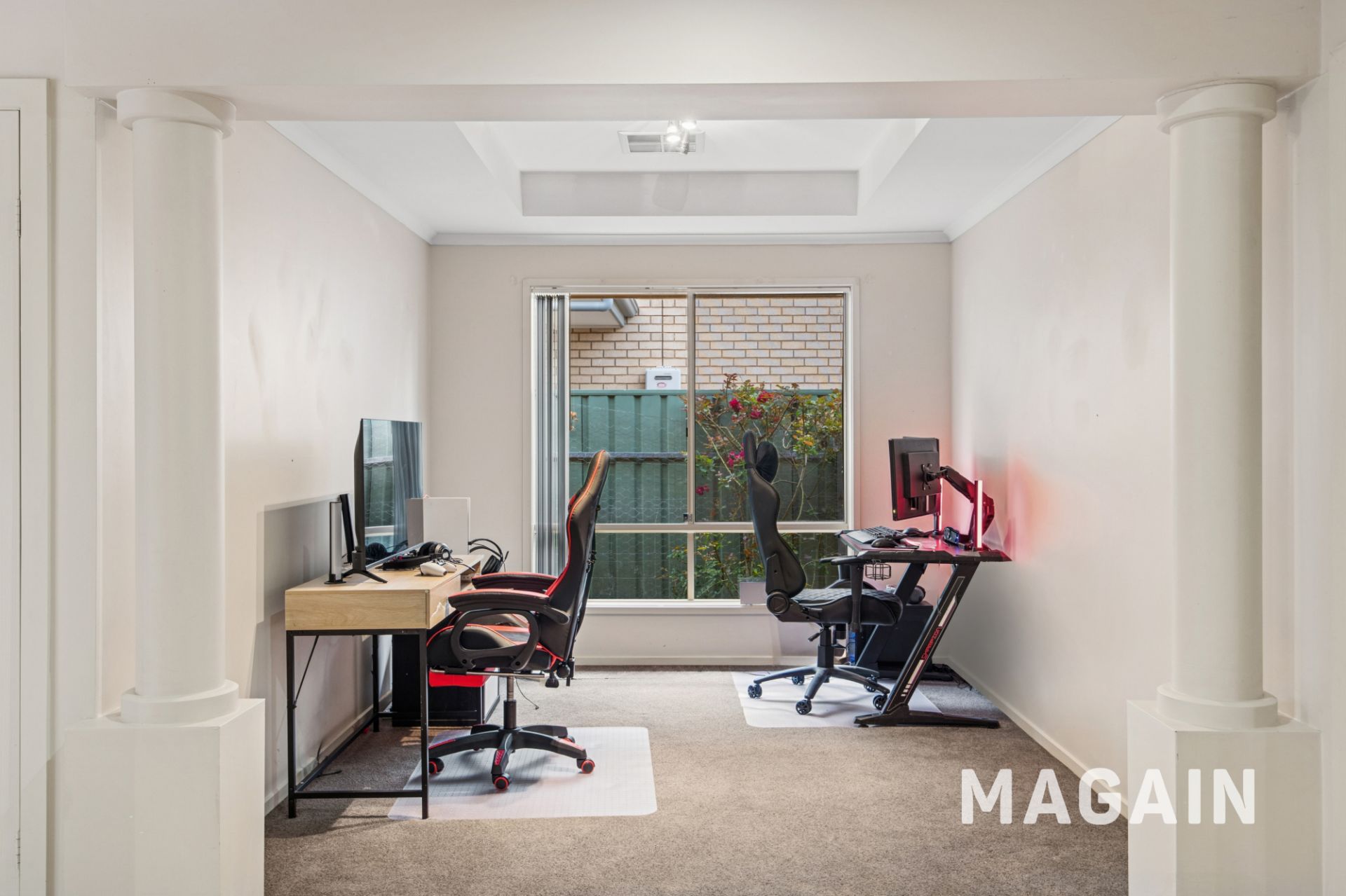 The home features four bedrooms, with the main bedroom at the front, complete with a walk-in robe and private ensuite. Down a separate hallway, the remaining bedrooms with bedrooms 2 and 4 offering built-in robes and serviced by the main bathroom. A second living area and a separate dining/study add versatility, perfect for working from home, relaxing, or enjoying a quiet retreat.