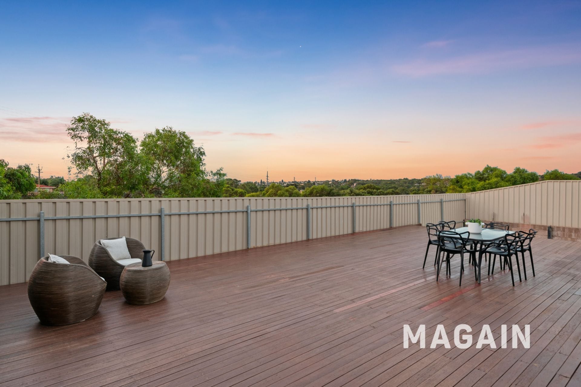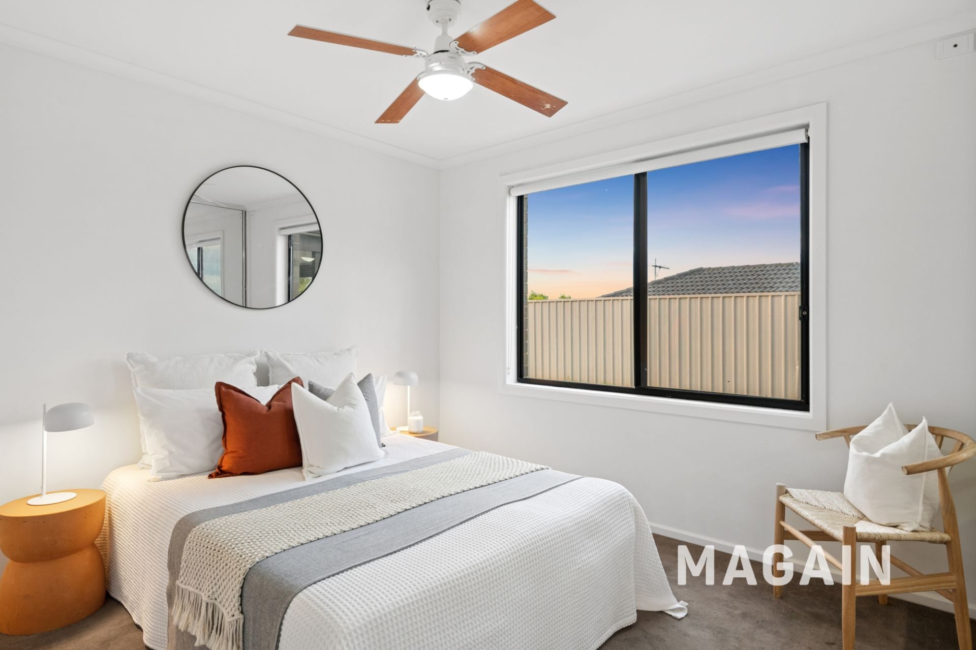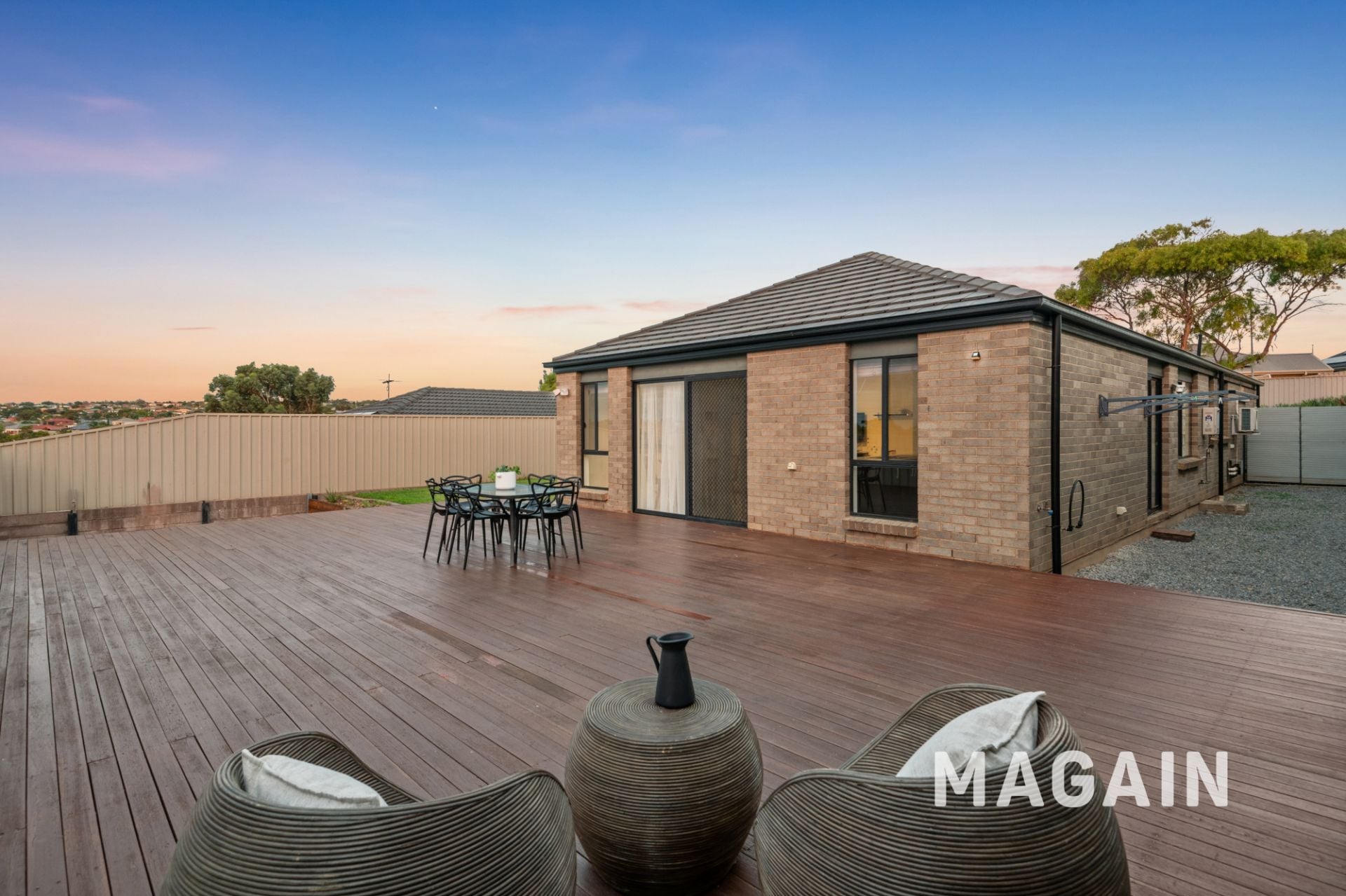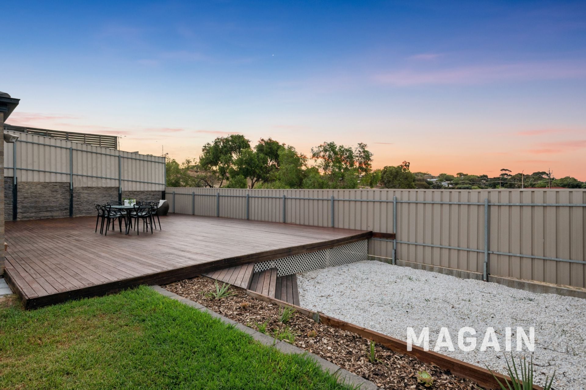 The backyard is secure and easy-care, featuring a lawn area for kids or pets and a dedicated fire pit zone, ideal for relaxed evenings under the stars.