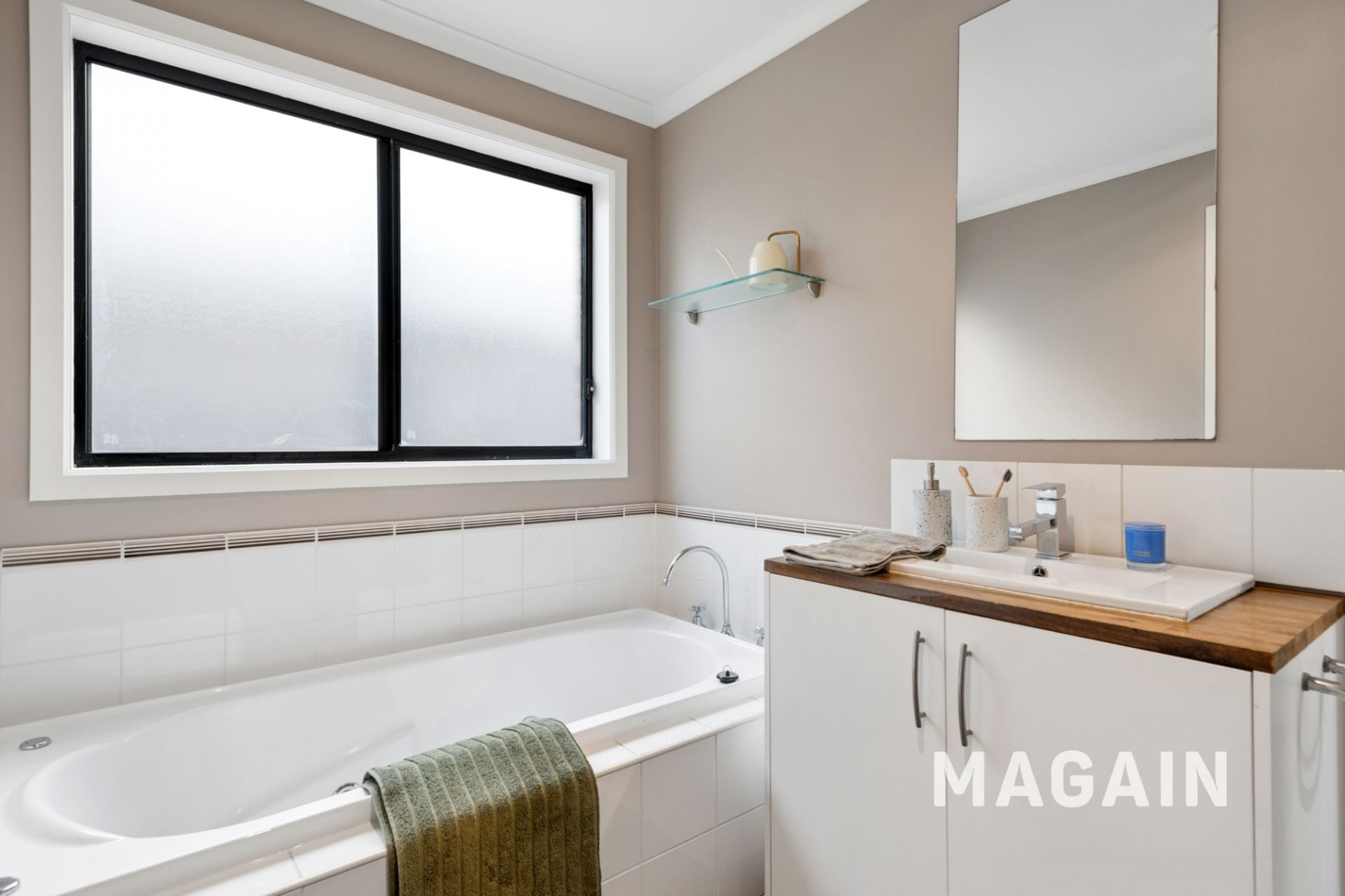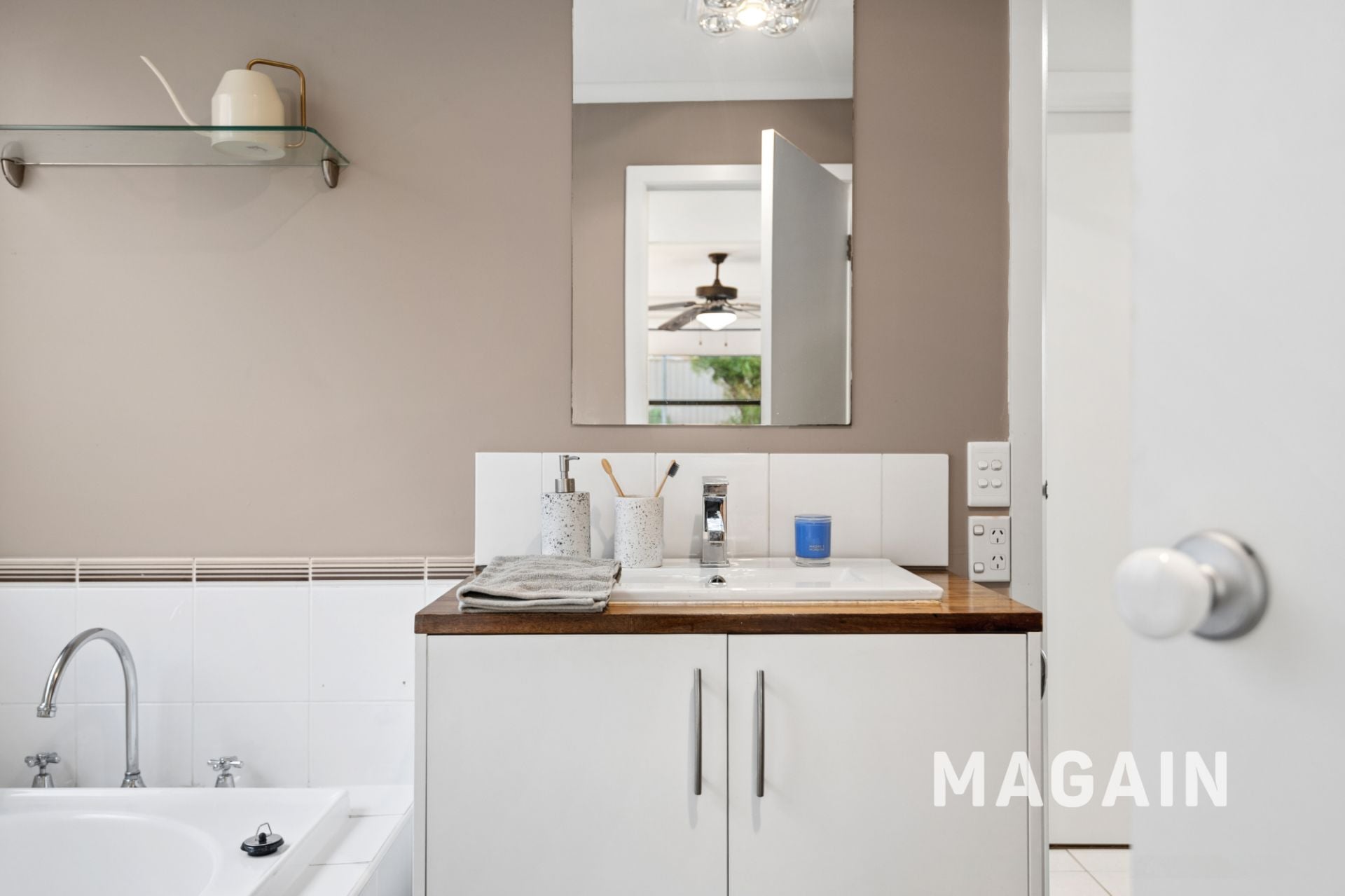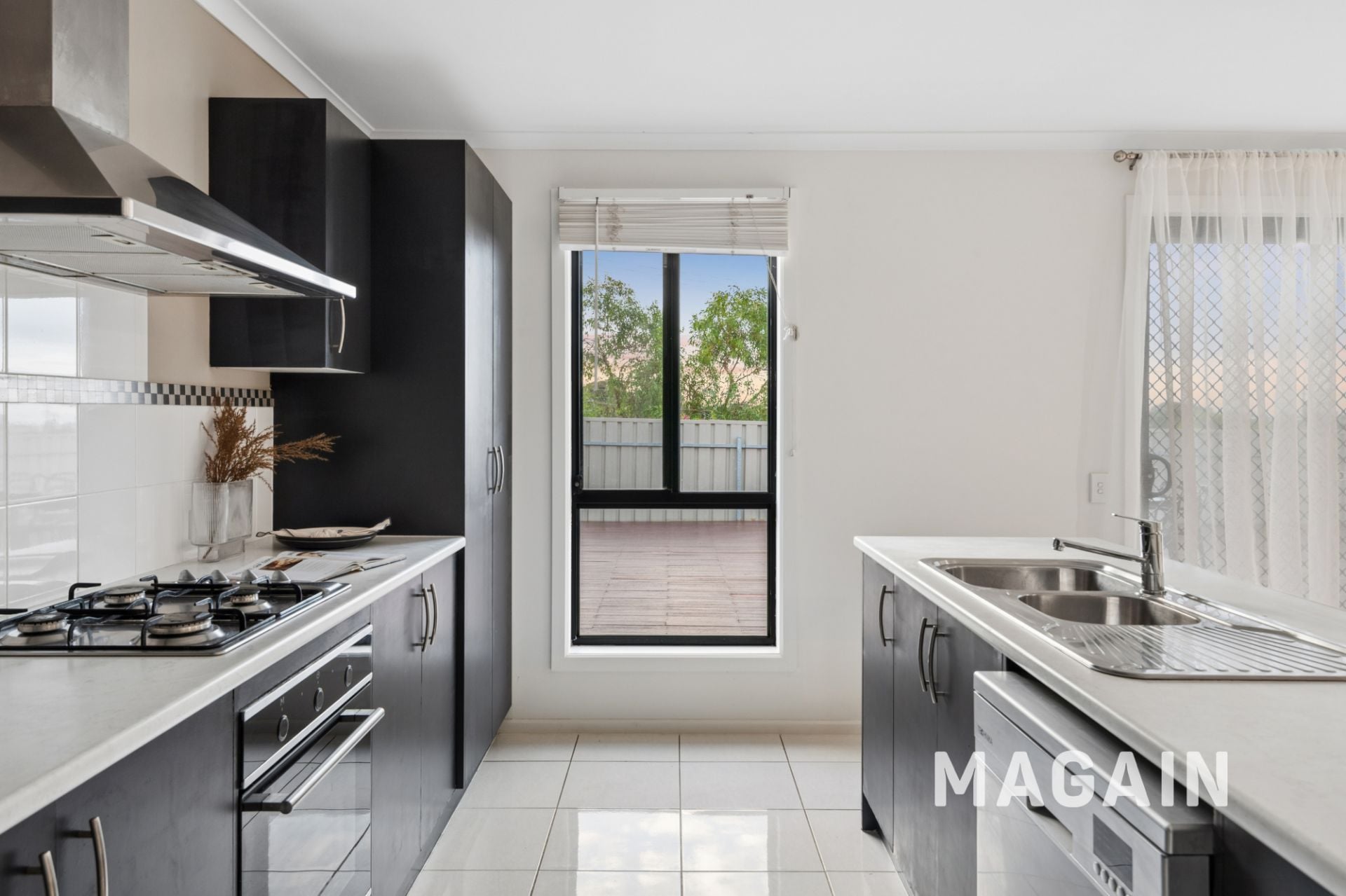 Sliding glass doors open out to a spacious rear deck – the perfect setting for entertaining guests or unwinding while enjoying leafy surrounds and a subtle glimpse of the ocean.
