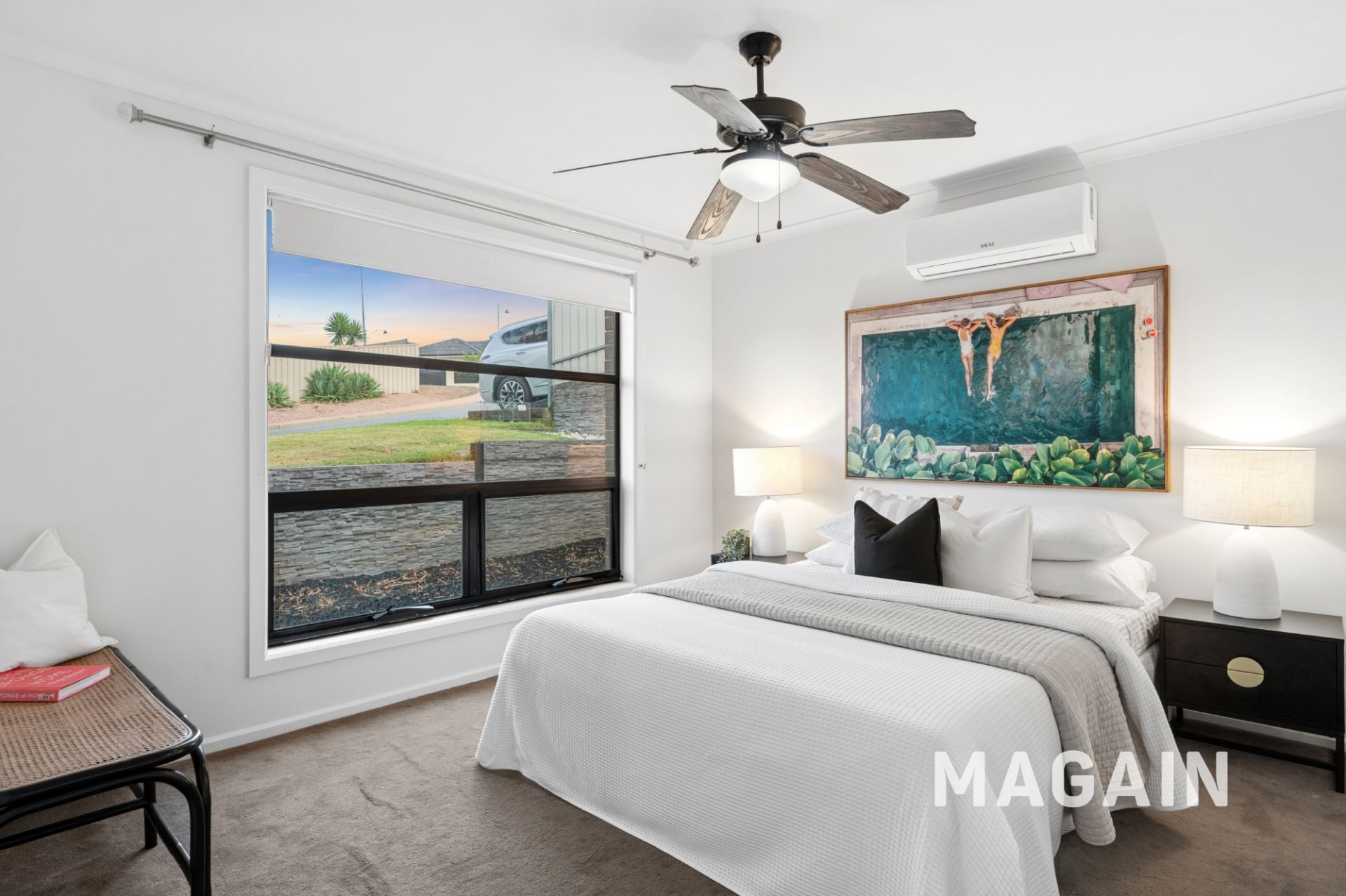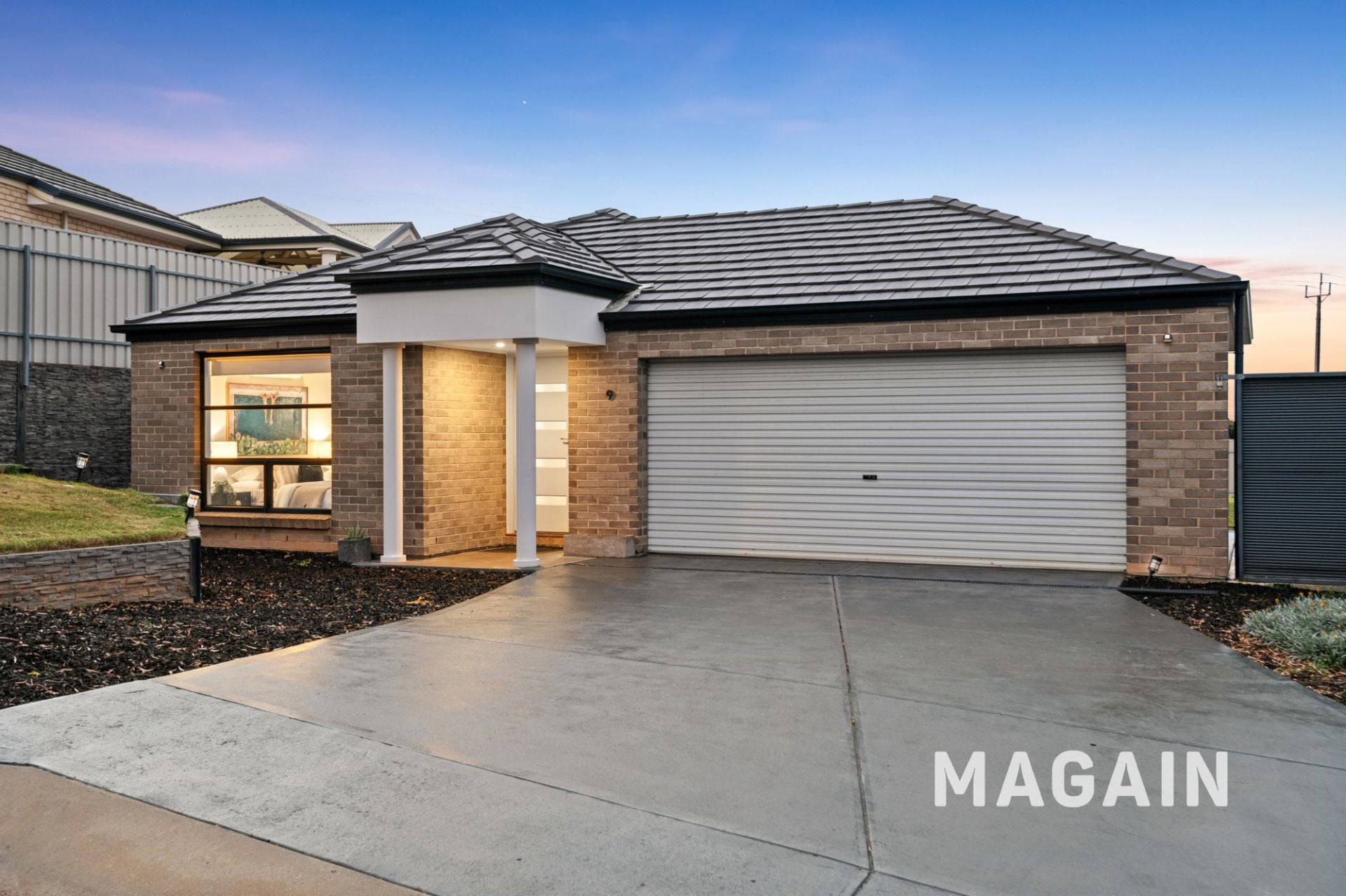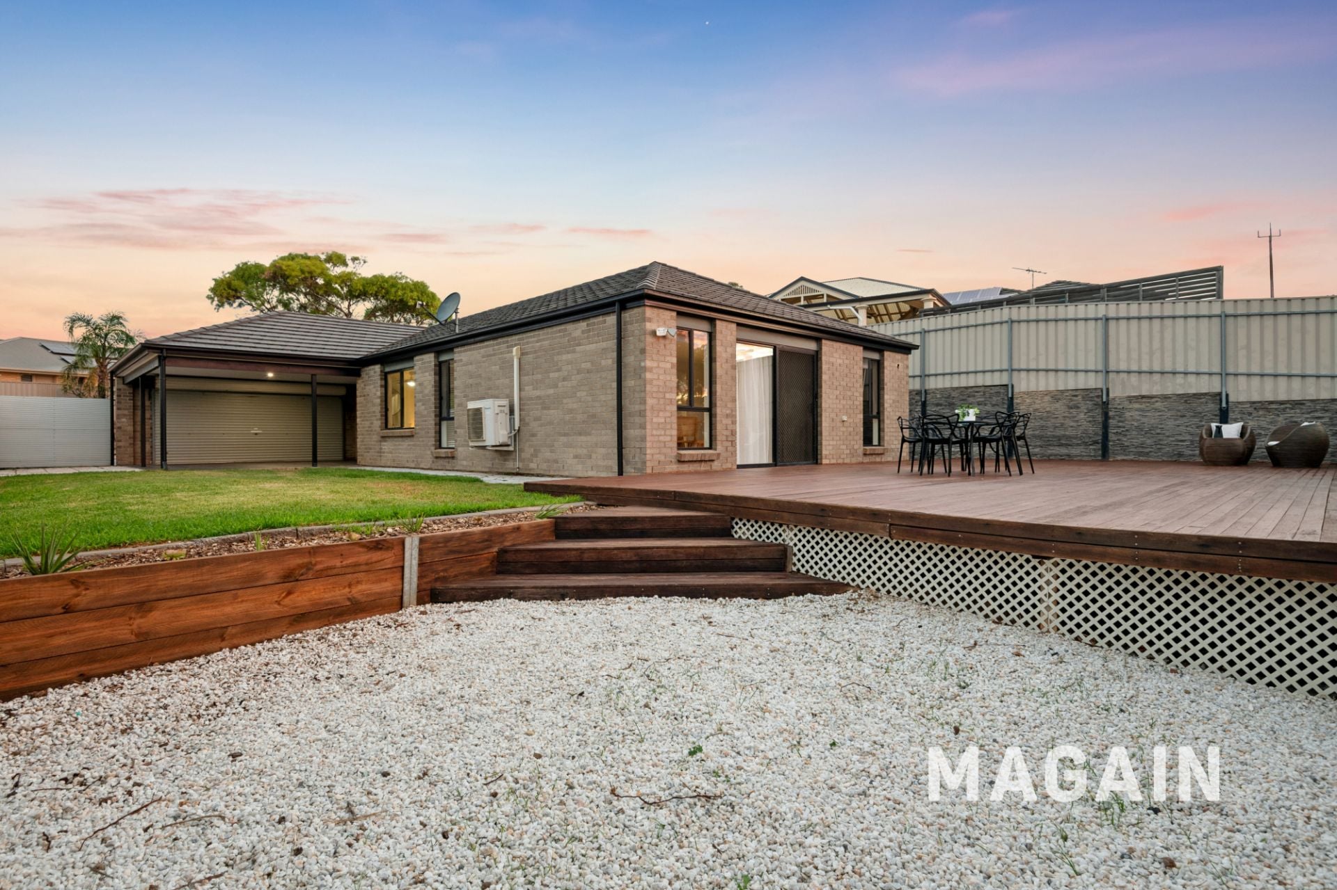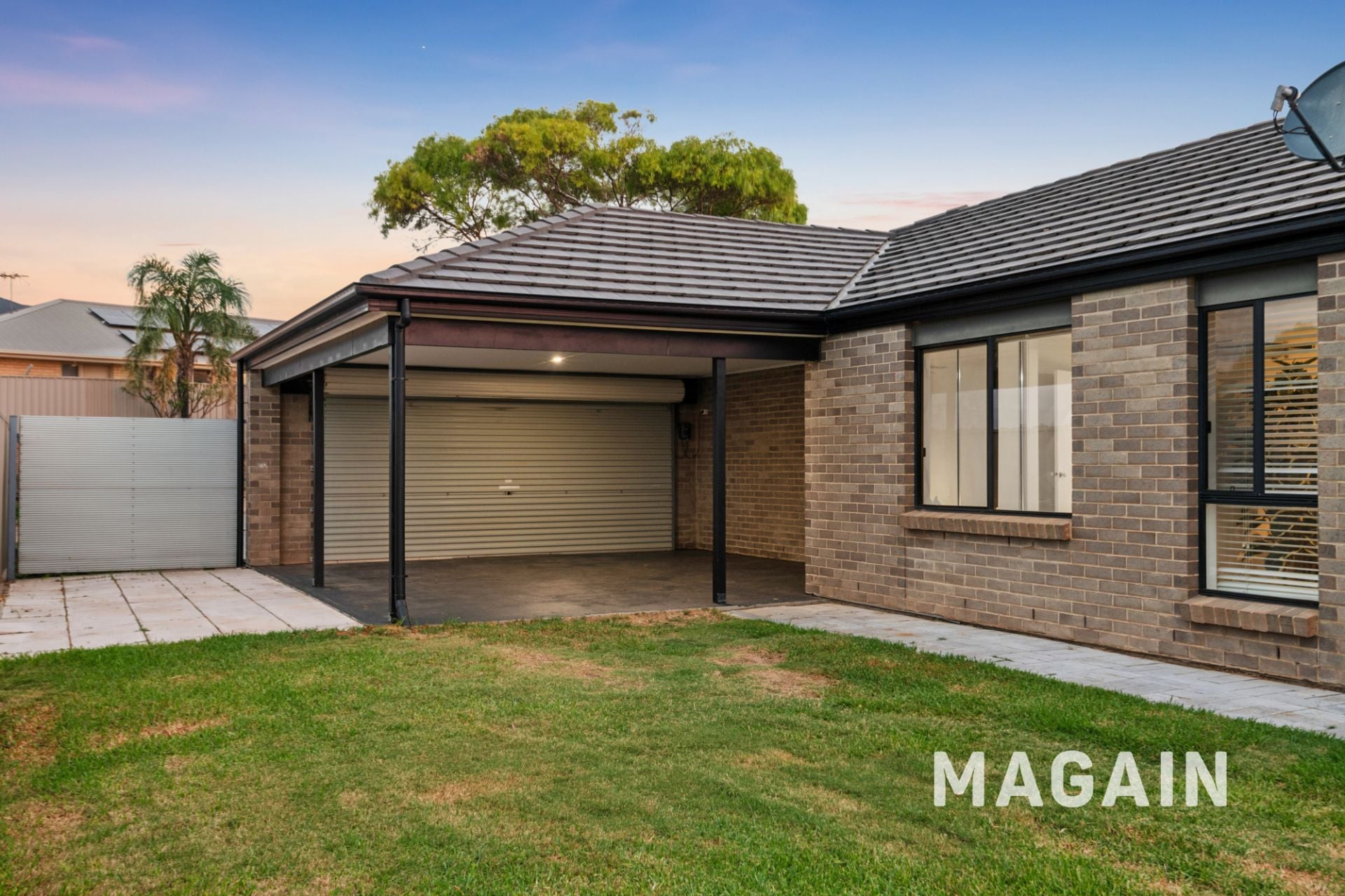 A double-width driveway leads to the double carport under the main roof, complete with an automated roller door, while additional off-street parking and valuable side gate access provide ample room for a caravan, trailer, or extra vehicles.