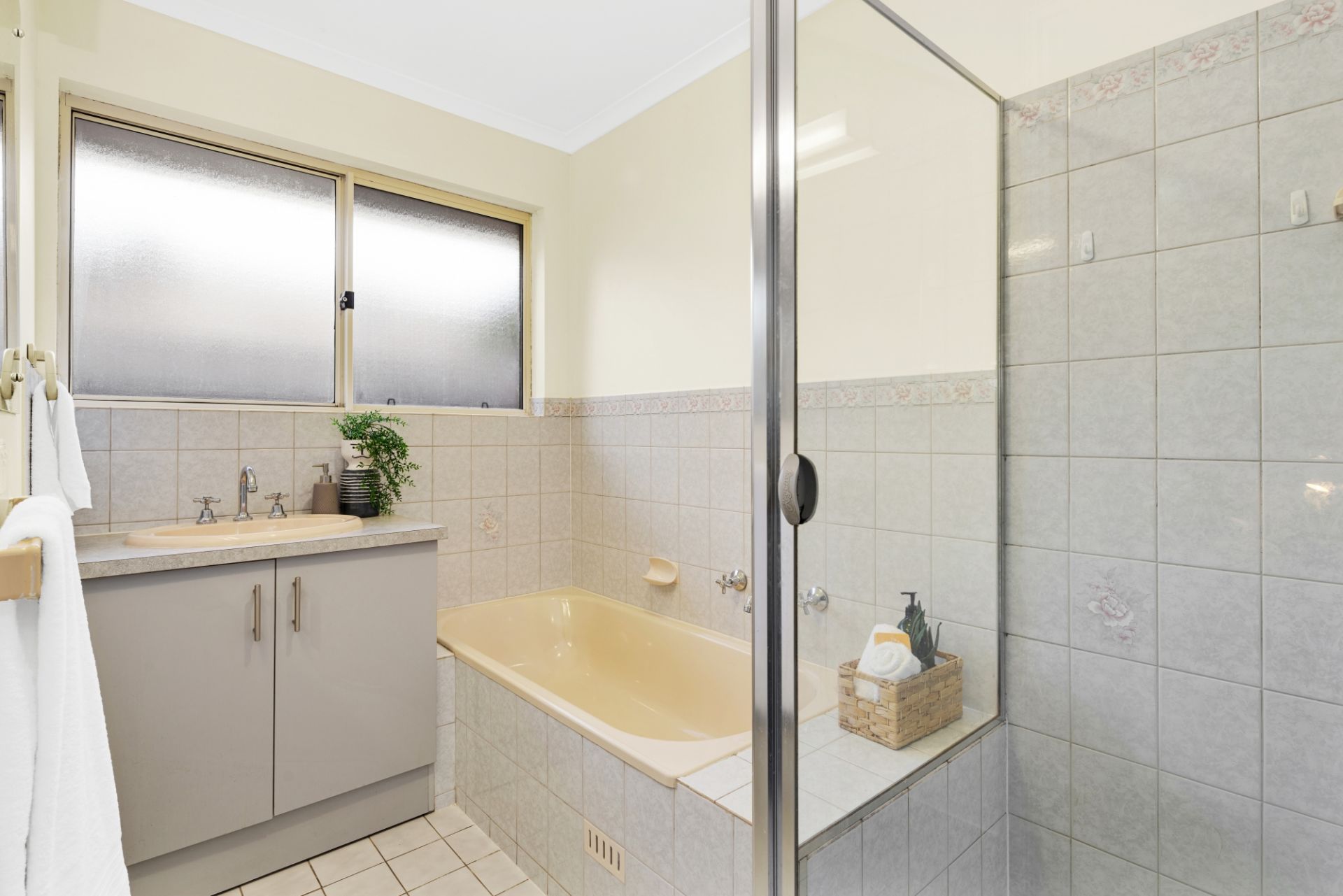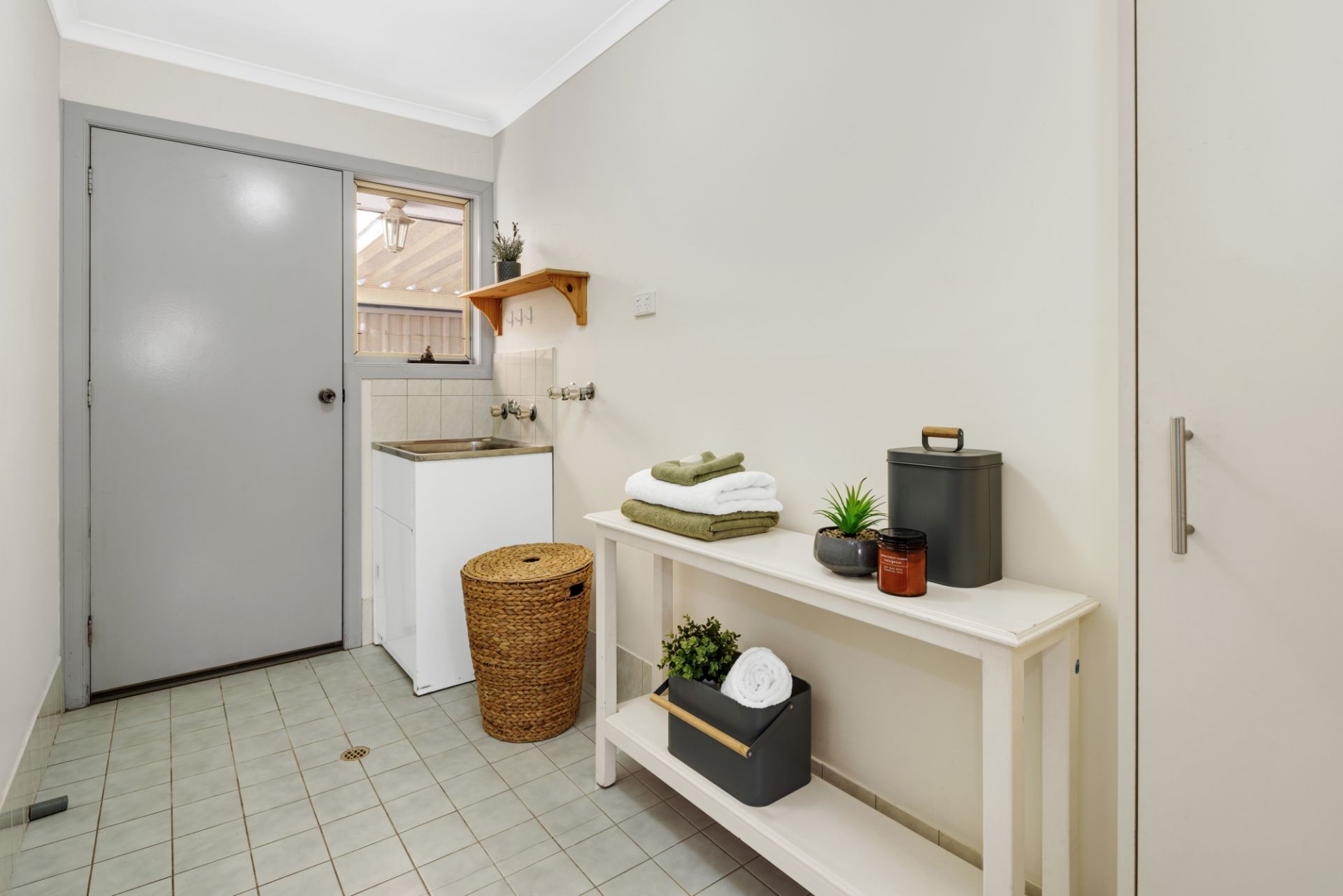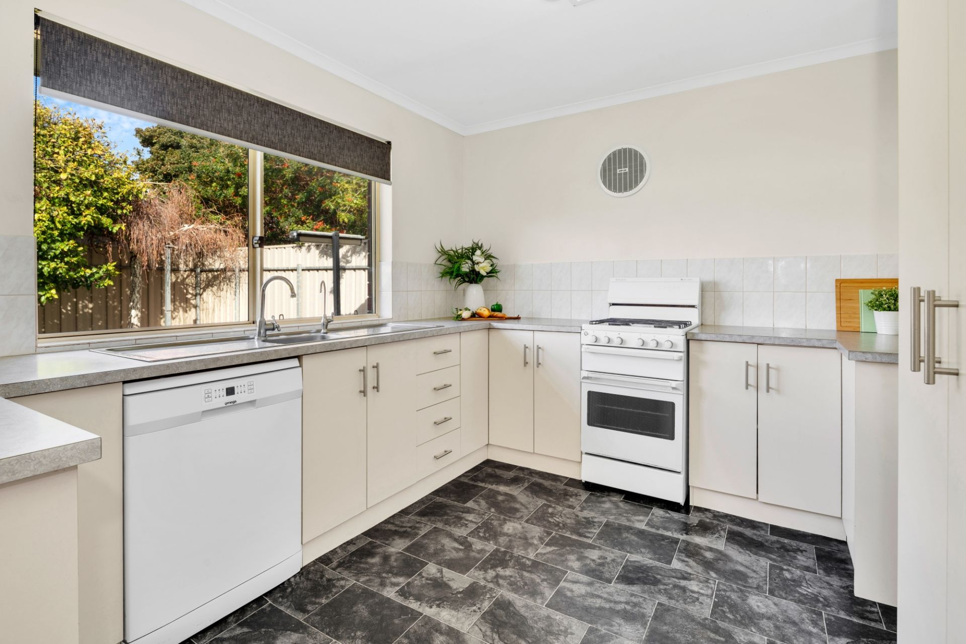 Beautifully presented inside & out, the home features a well-designed floor plan consisting of a separate entrance, two living areas, three bedrooms and a private outdoor entertaining area with low maintenance gardens. The three bedrooms are all a good size, the master boasts a walk-in robe and built-in robe, while bedroom two offers a built-in robe. All the bedrooms are carpeted and centrally located to the neat & tidy bathroom, with the convenience of a separate toilet. Positioned at the front of the home is a large elegant living room, it features a gas fire (currently disconnected) and is full of natural light. The hub of the home is the open plan kitchen, meals area and family room, opening through glass sliding doors to the covered entertaining area. Spacious, appealing and practical, the kitchen has a gas cooktop & oven, a dishwasher, plenty of bench & cupboard space and offers a great outlook onto the backyard. Other great features include ducted & zoned reverse cycle air conditioning throughout, ceiling fans in bedrooms one & two, easy-care lino flooring in the high traffic areas and additional storage/linen cupboard in the hallway.