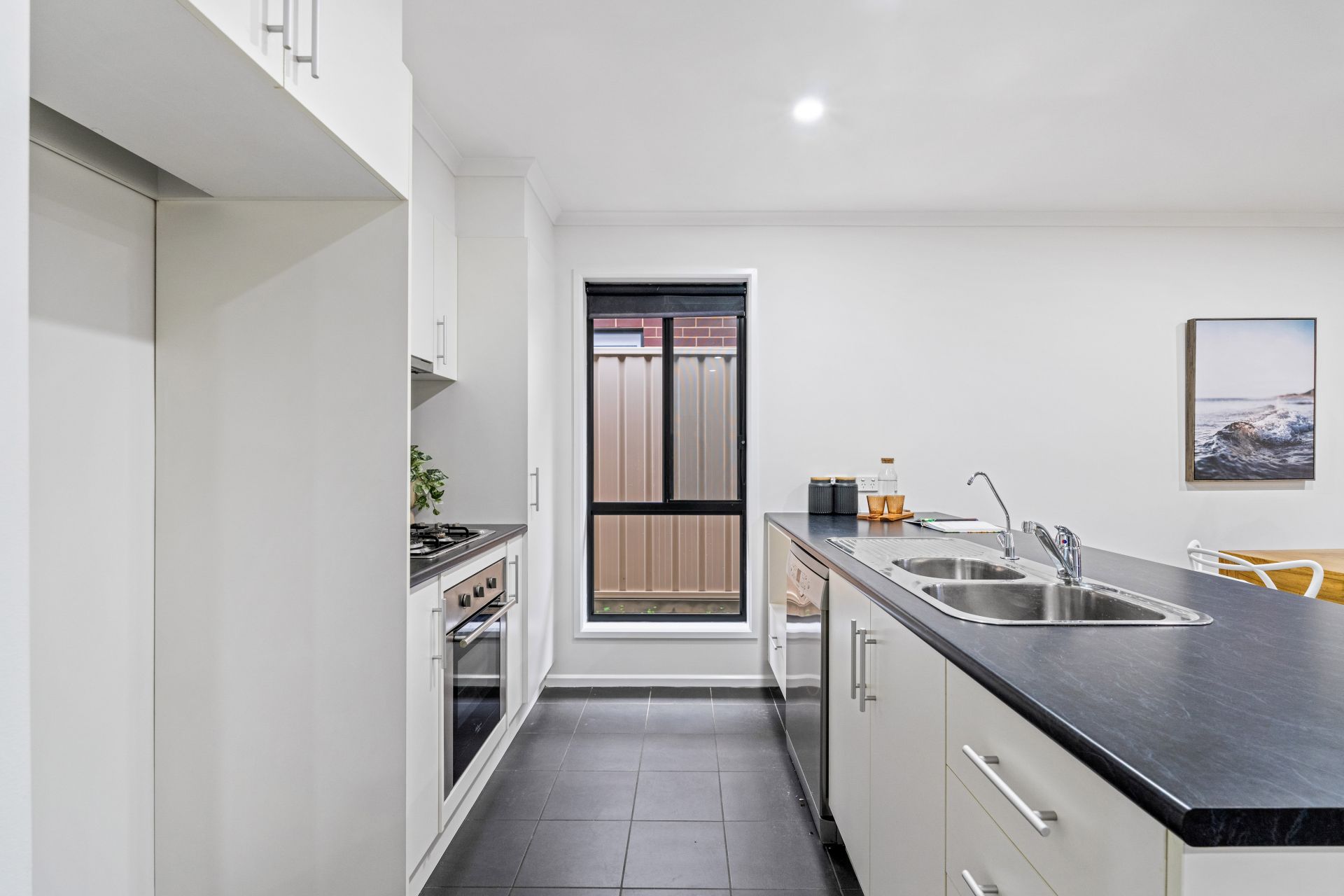 Those who consider the kitchen to be the heart of the home will be suitably impressed by the abundance of cabinetry, modern stainless-steel appliances including a gas cooktop and a dishwasher plus a well-positioned breakfast bar seamlessly connecting the kitchen to the living space while creating a beautiful gathering spot when entertaining family and friends.
