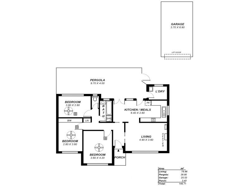 > 3 good sized bedrooms with a built in robe in main