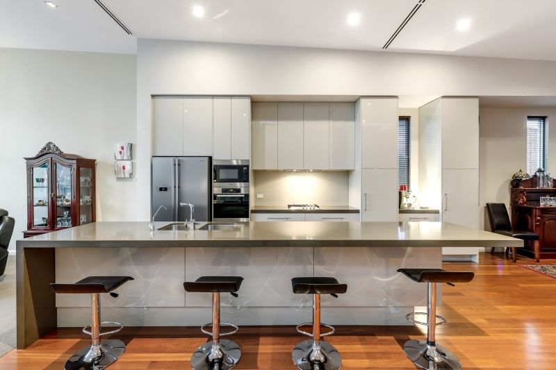Spectacular designer kitchen with 4.2M stone island bench and gas cooking