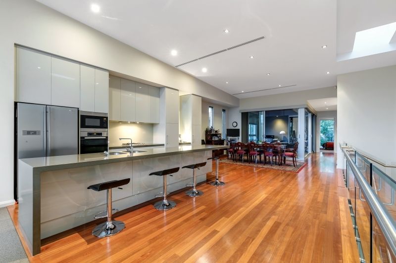 This imposing architecturally designed residence in a small group of 4 is perfectly positioned on the North East corner which allows abundant natural light to stream in through spectacular 4 Metre floor to ceiling picture frame windows. A huge, solid wood statement door welcomes you into this modern masterpiece of over 300sqm of luxurious city living.