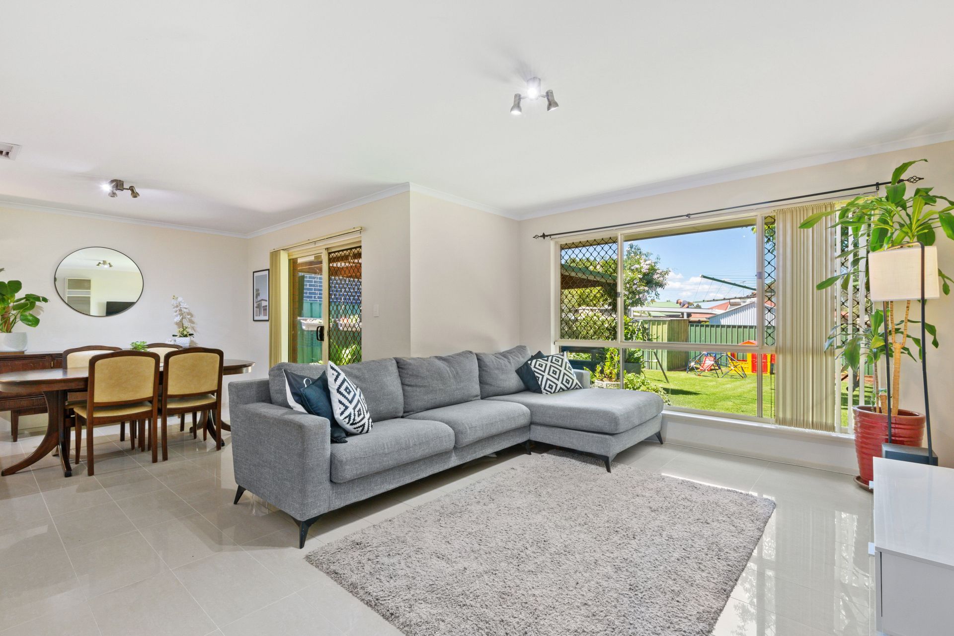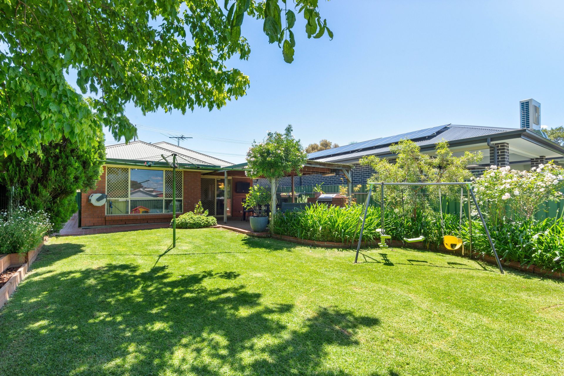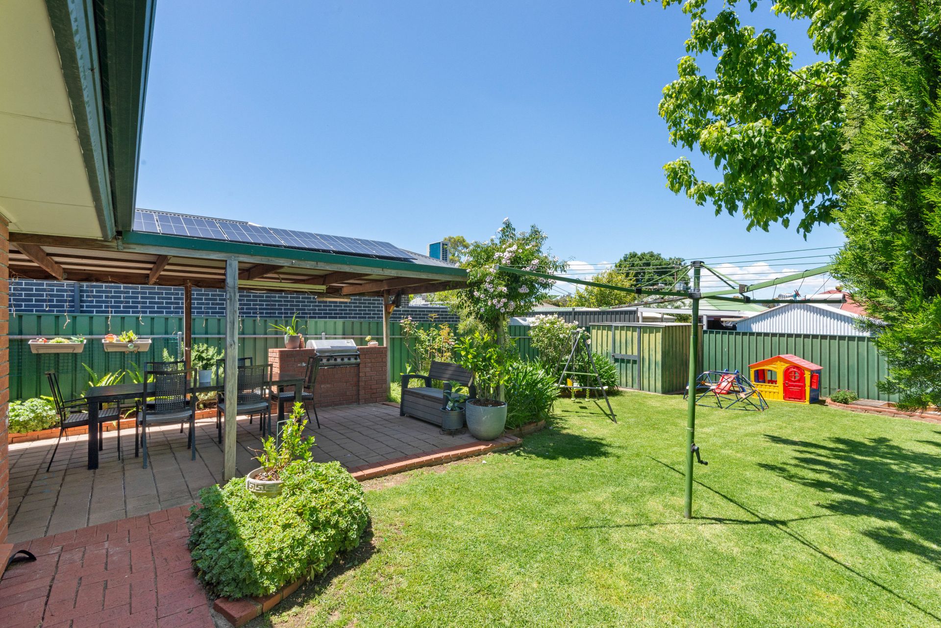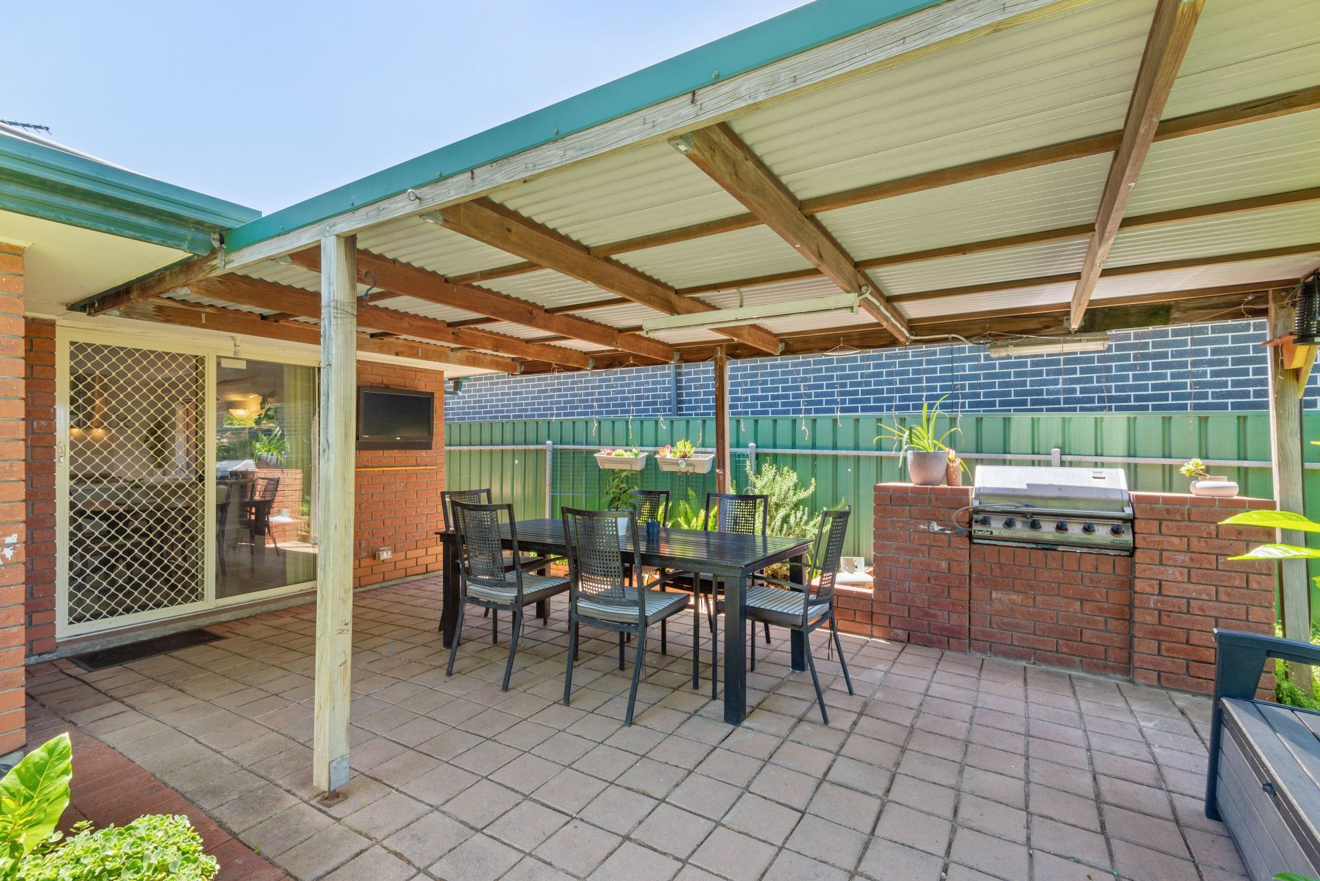 Glass sliding doors from the open-plan living allow a picturesque view and seamless access to a paved entertaining area covered by a Skillion roof pergola and grassed yard, providing children and pets plenty of space to run around and play with fabulous privacy.