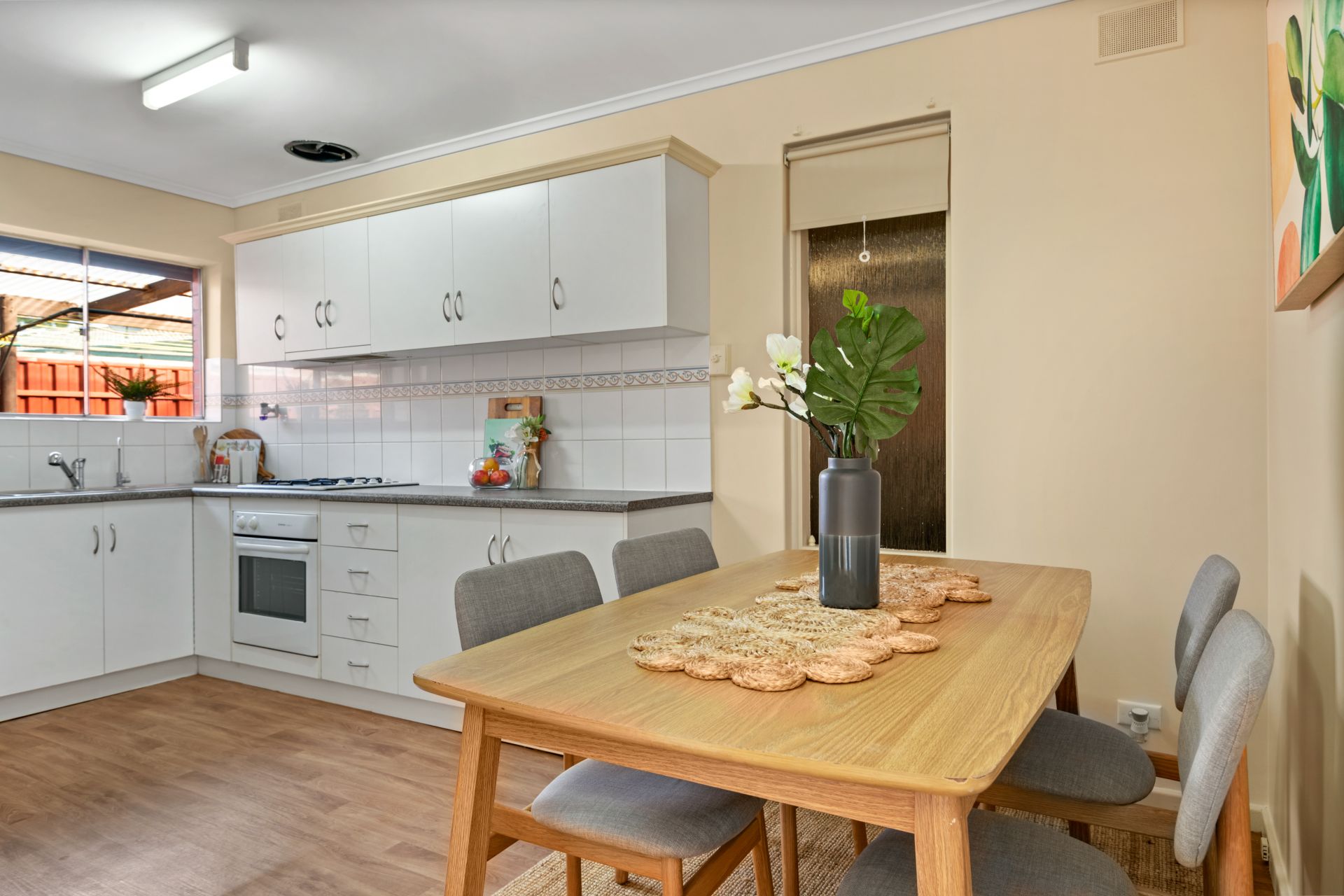 Stepping outside you will find the paved, under cover entertaining area - perfect for year-round enjoyment. There is also a gate that gives access to a secure grassed area. The single carport with roller door has been enclosed and features a handy lockable storage area at the rear of the carport.