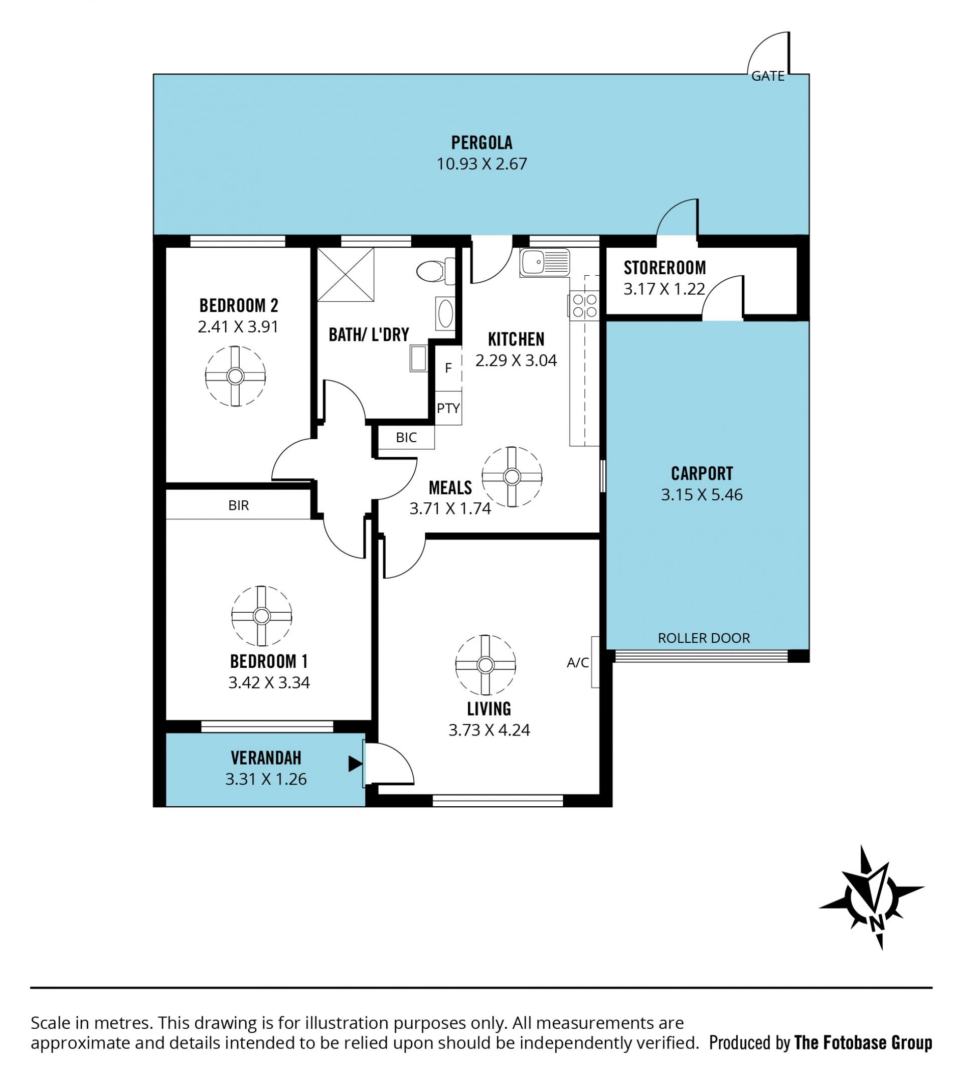 There are two bedrooms, both have ceiling fans & carpet floors, while the main has a large built-in robe. The renovated bathroom is generous in size, containing a walk-in shower, a vanity with storage, a toilet and laundry facilities. Additional features include roller shutters on all windows, quality flooring in the bedrooms & living area plus a ceiling fan in the meals area.